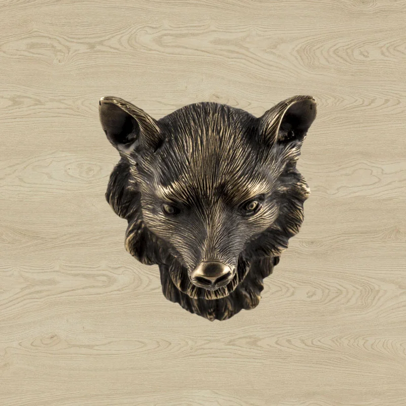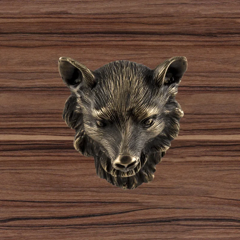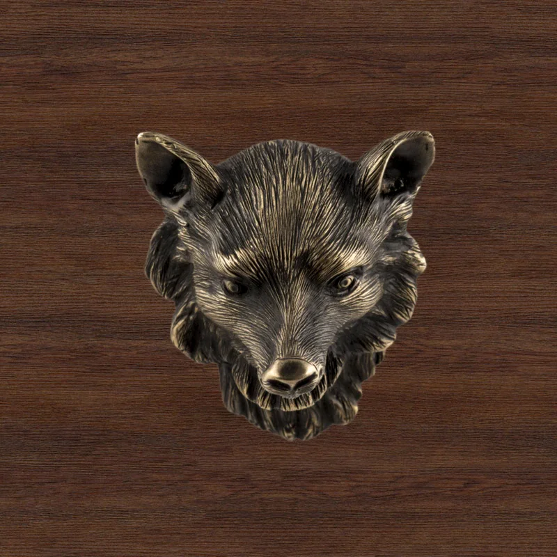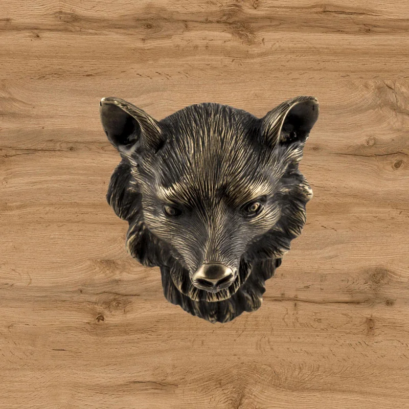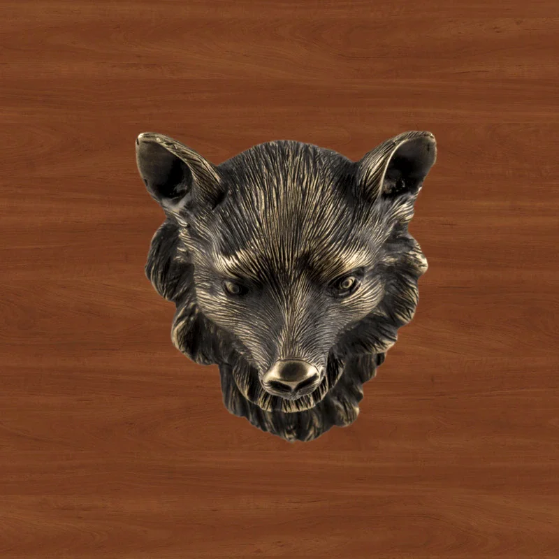 Мастерская «Калежа» создает классическую мебельную фурнитуру из латуни. Оригинальную ручку-кнопку в форме головы гиены удобно удерживать одной рукой. Работая над проектом, наши мастера применяли бронзовое литье. Для имитации шерсти поверхности мы использовали чернение и химическую гравировку. Изготовление комплектующих для мебели возможно в течение трех недель.