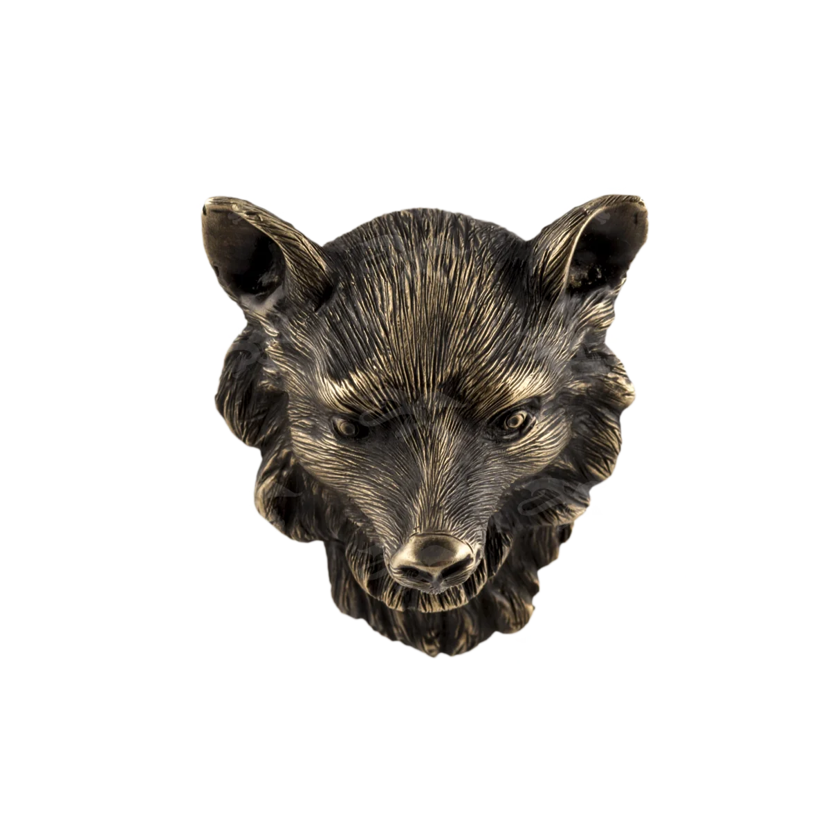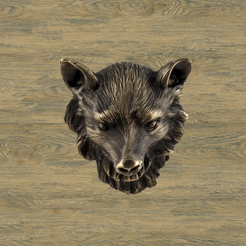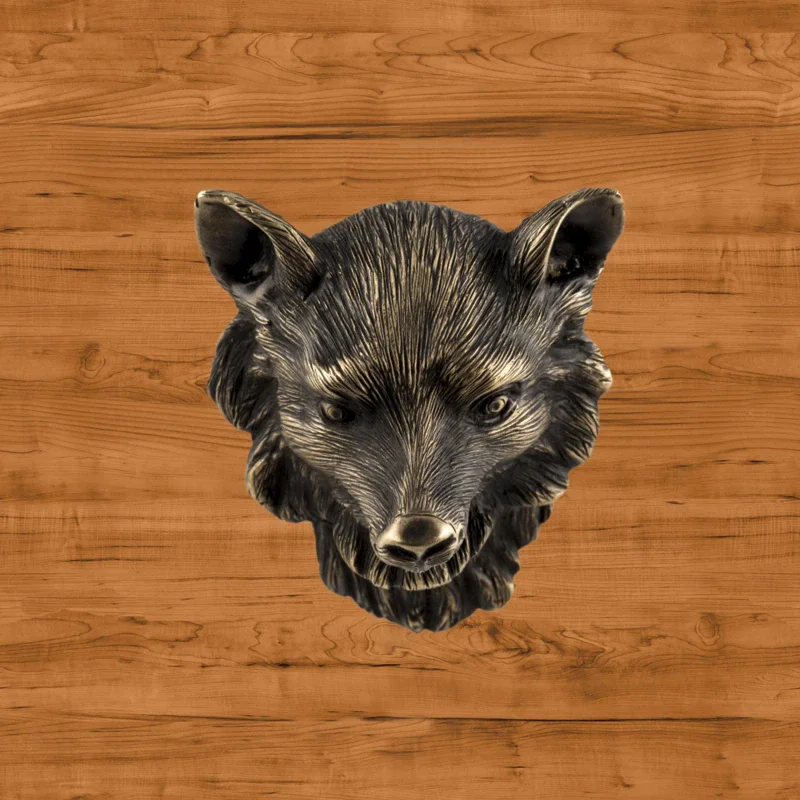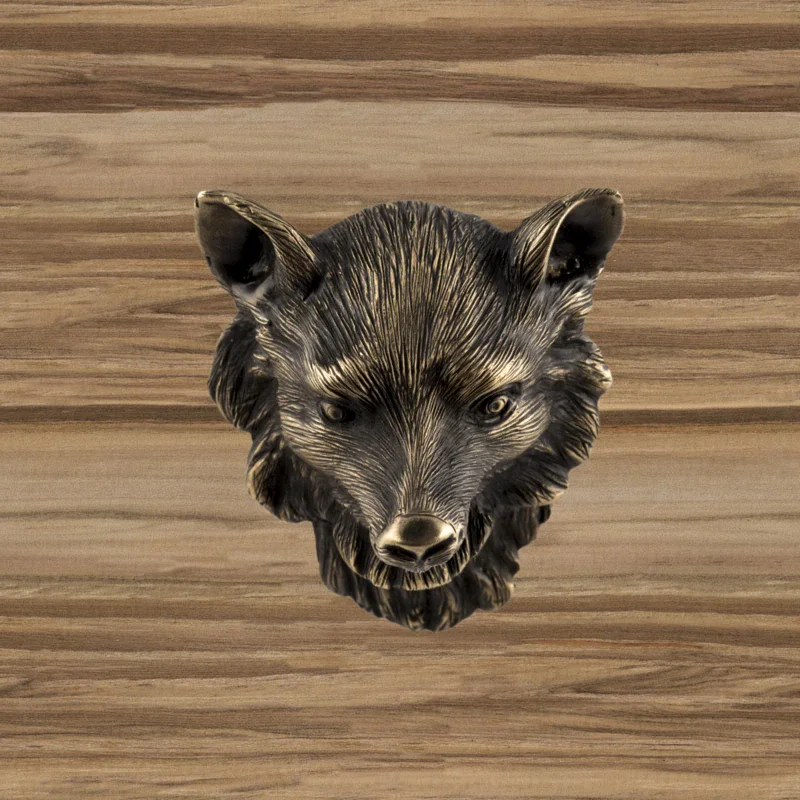 Мастерская «Калежа» создает классическую мебельную фурнитуру из латуни. Оригинальную ручку-кнопку в форме головы гиены удобно удерживать одной рукой. Работая над проектом, наши мастера применяли бронзовое литье. Для имитации шерсти поверхности мы использовали чернение и химическую гравировку. Изготовление комплектующих для мебели возможно в течение трех недель.