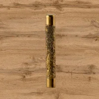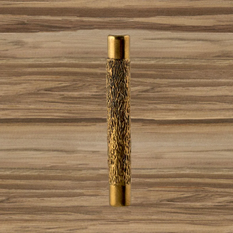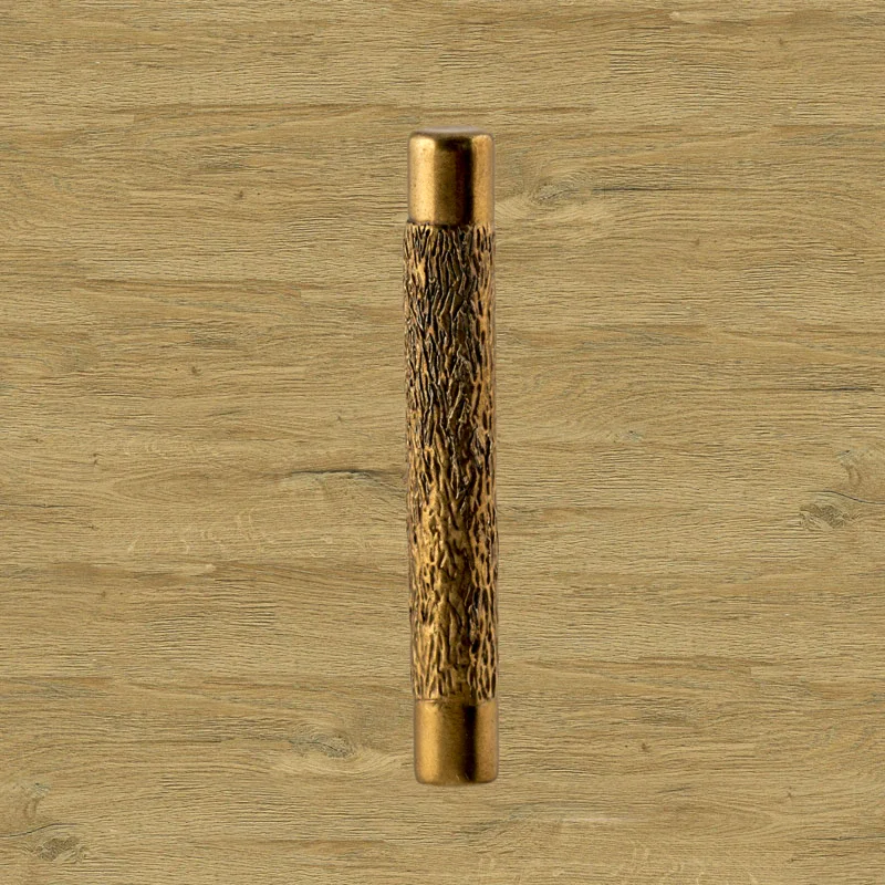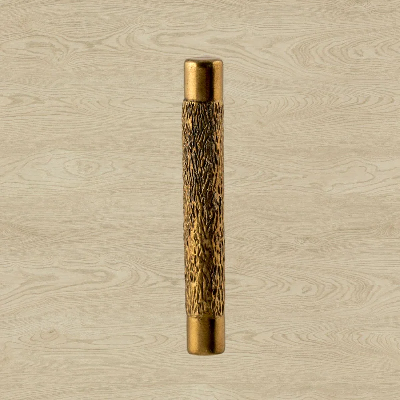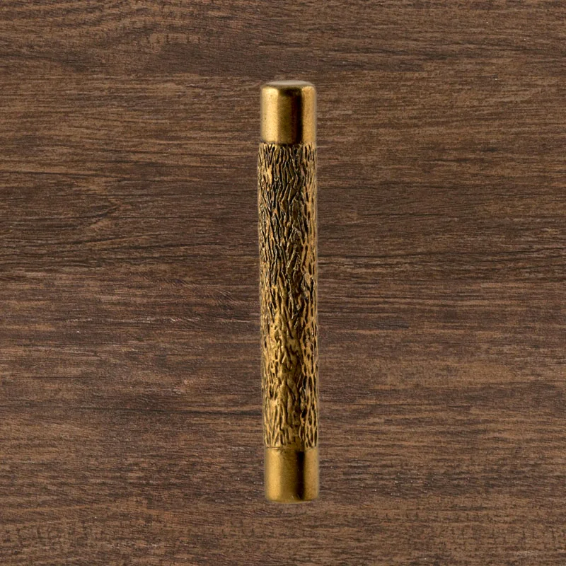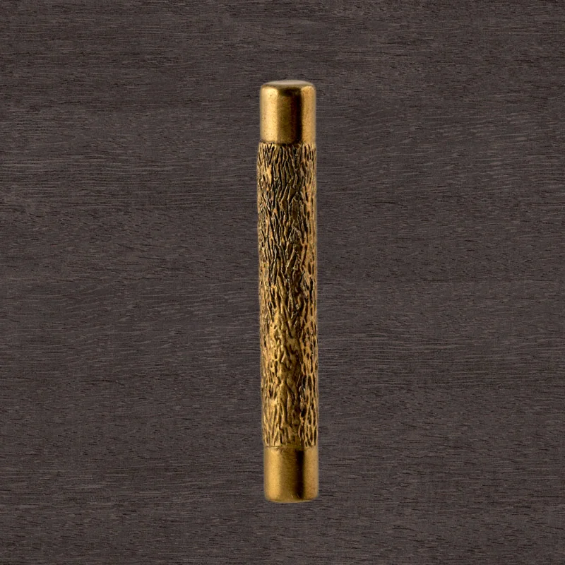 В мастерской «Калежа» можно заказать мебельную фурнитуру из латуни с необычным оформлением. Оригинальная ручка-кнопка простой формы получена по технологии бронзового литья. Установленная на ящике шкафа или стола, она позволяет быстро его открывать. Изготовление таких деталей для мебели нашими мастерами занимает до трех недель.