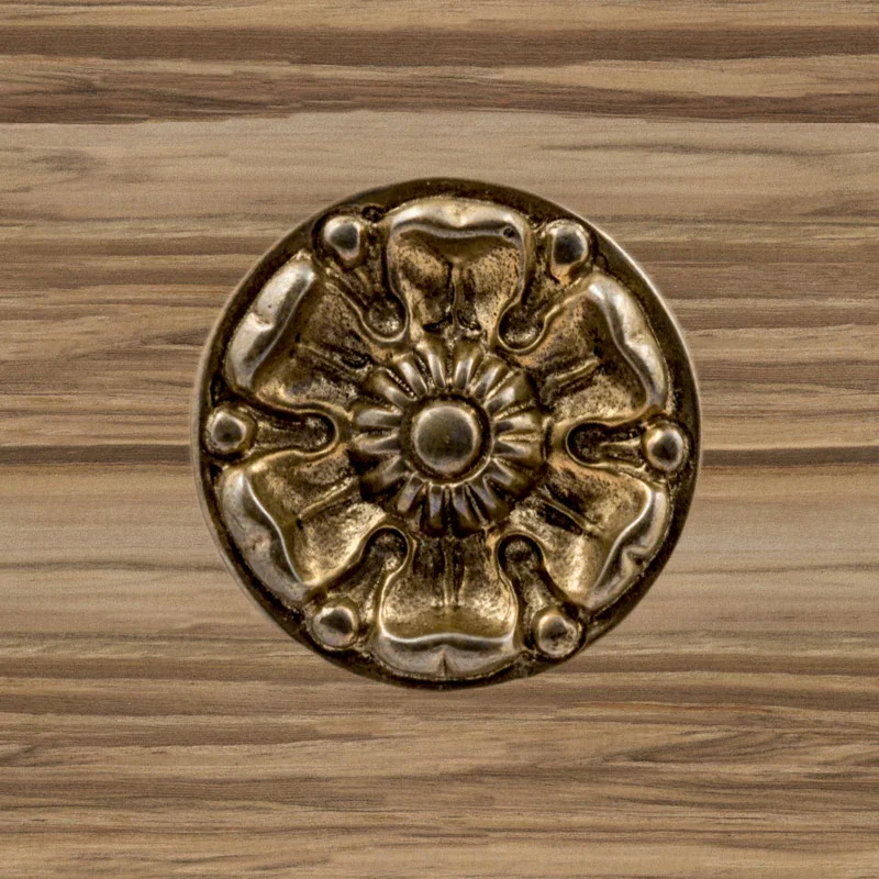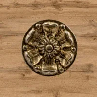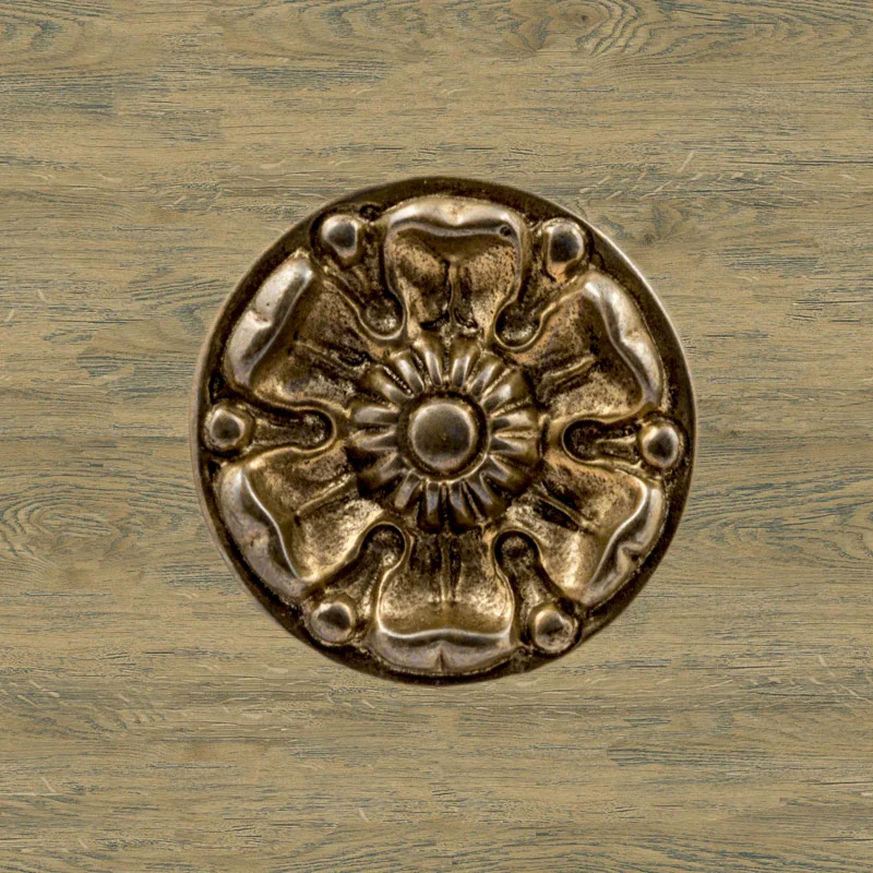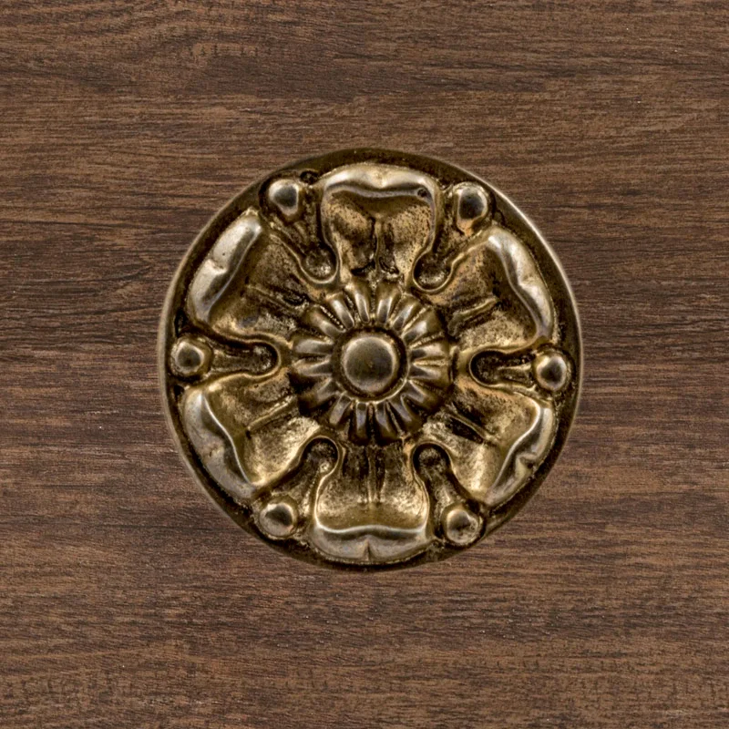 Ручка-кнопка из латуни, выполненная в стиле барокко, декорирована гармоничным цветочным узором. Такая фурнитура может стать изюминкой любого классического интерьера. Пышная отделка и строгое соблюдение пропорций превращают стандартное изделие в желанную находку для ценителей винтажных вещей. Надежная фурнитура из мастерской «Калежа» отличается удобством захвата и устойчивостью к появлению коррозии.