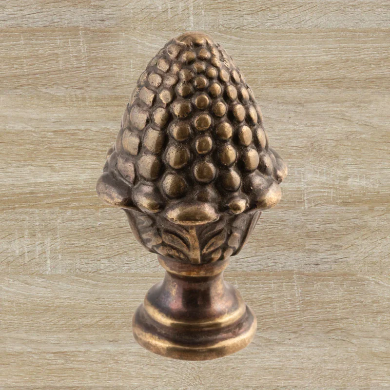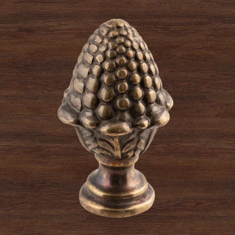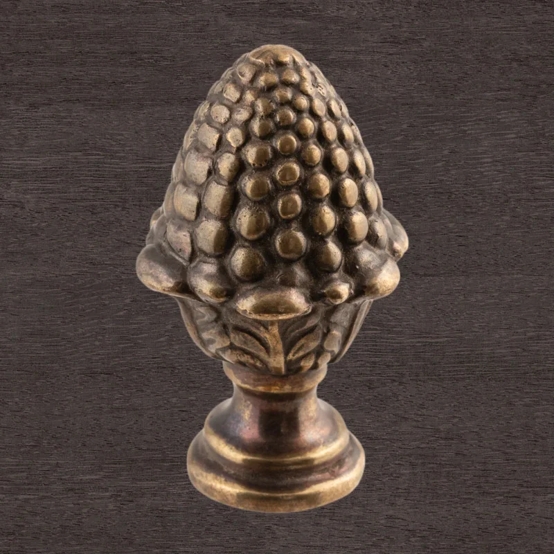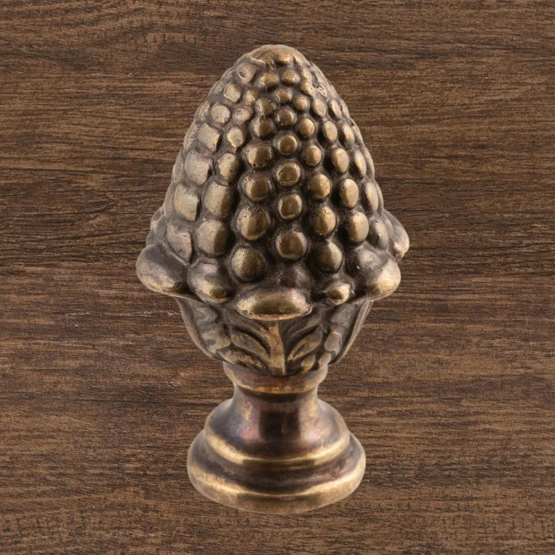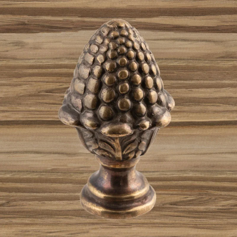 Эта уникальная ручка-кнопка выполнена в виде шишки сосны пинии. Фурнитура из латуни предназначена для монтажа на мебель. Стильный декор гармонично сочетается как с современным, так и с винтажным интерьером. Такую ручку-кнопку удобно захватывать рукой. Кроме того, изделие отличается устойчивостью к появлению ржавчины, прочностью и долговечностью.