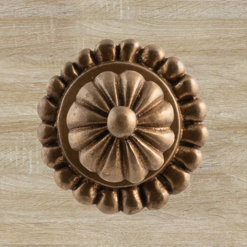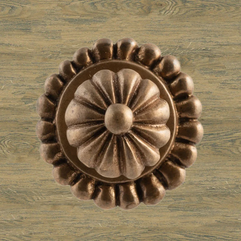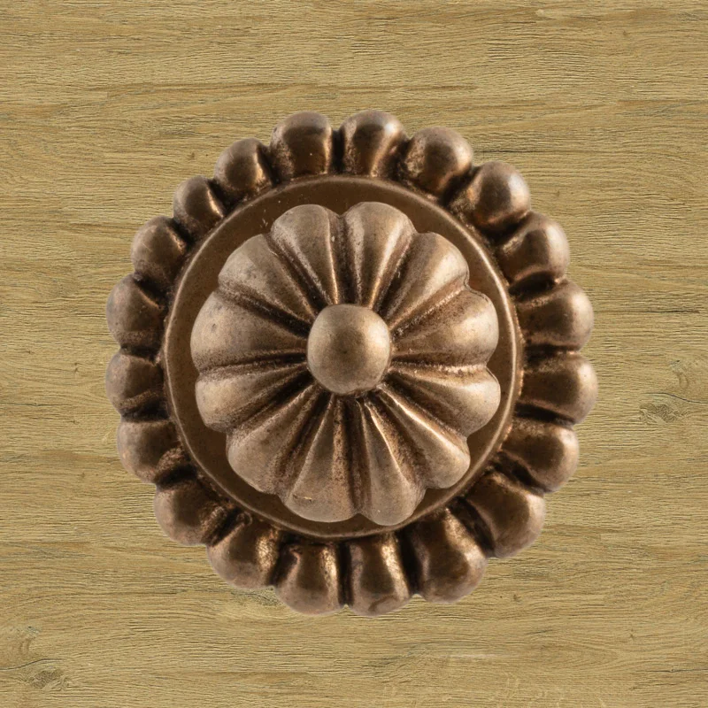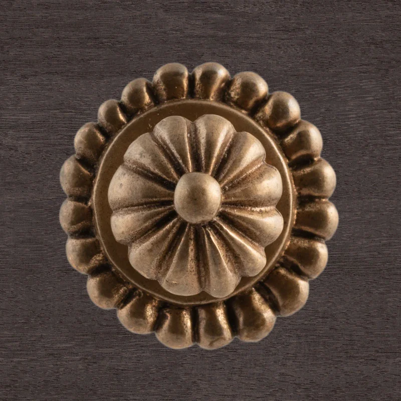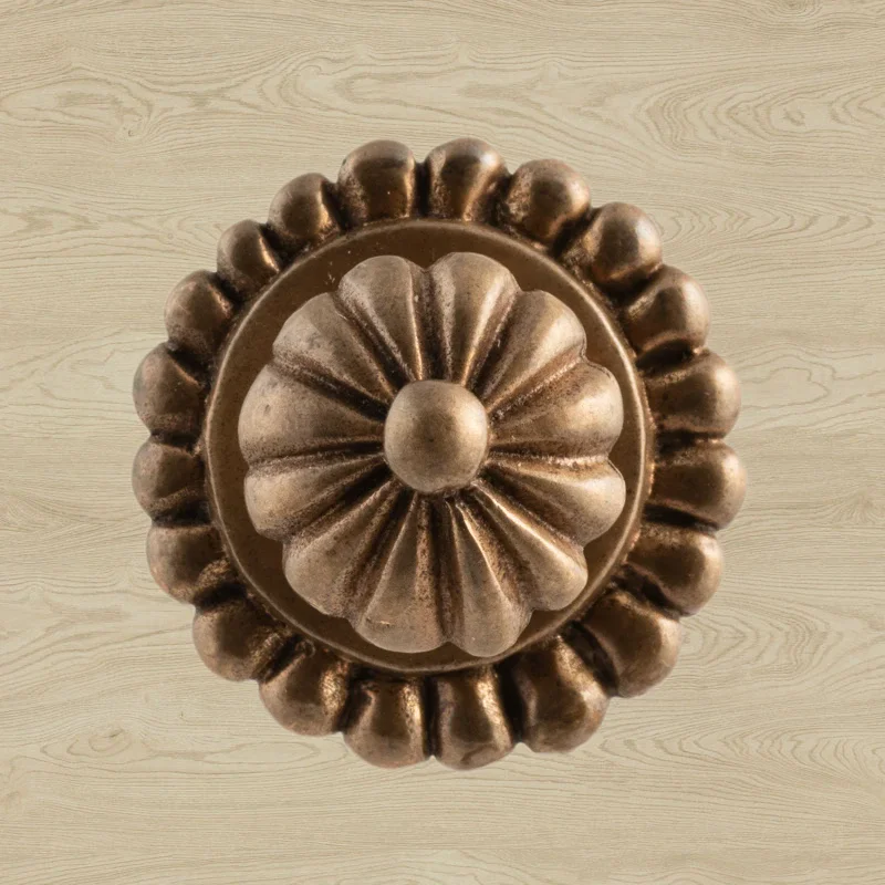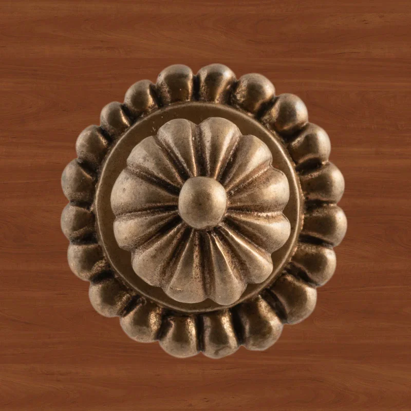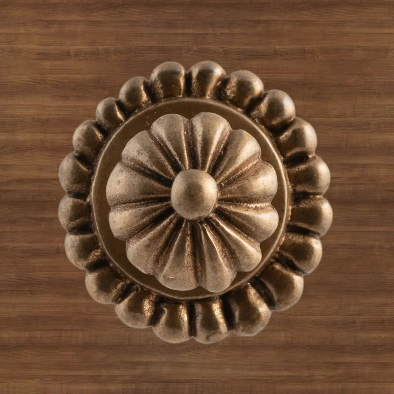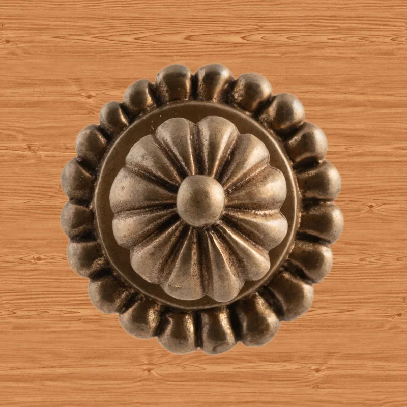 В мастерской «Калежа» доступно изготовление уникальной латунной фурнитуры для мебели. При создании ручки-кнопки Ф1885 в стиле ар-деко мы использовали бронзовое литье. Благодаря пластичности материала было получено изделие сложной формы, напоминающее экзотический цветок. Срок выполнения подобных заказов составляет три недели. Также мы работаем с дизайн-проектами клиентов.