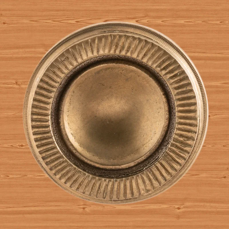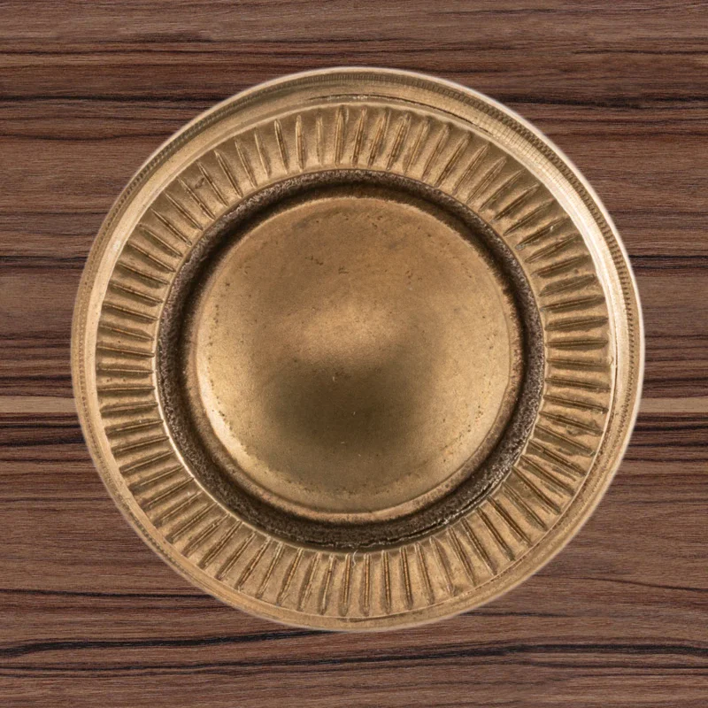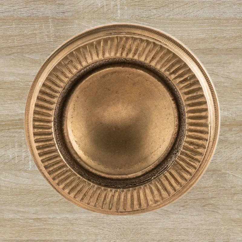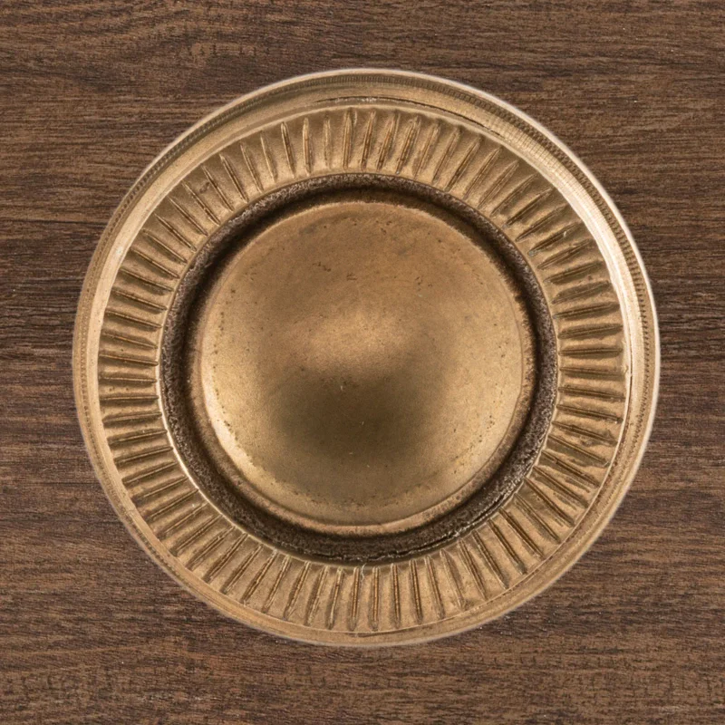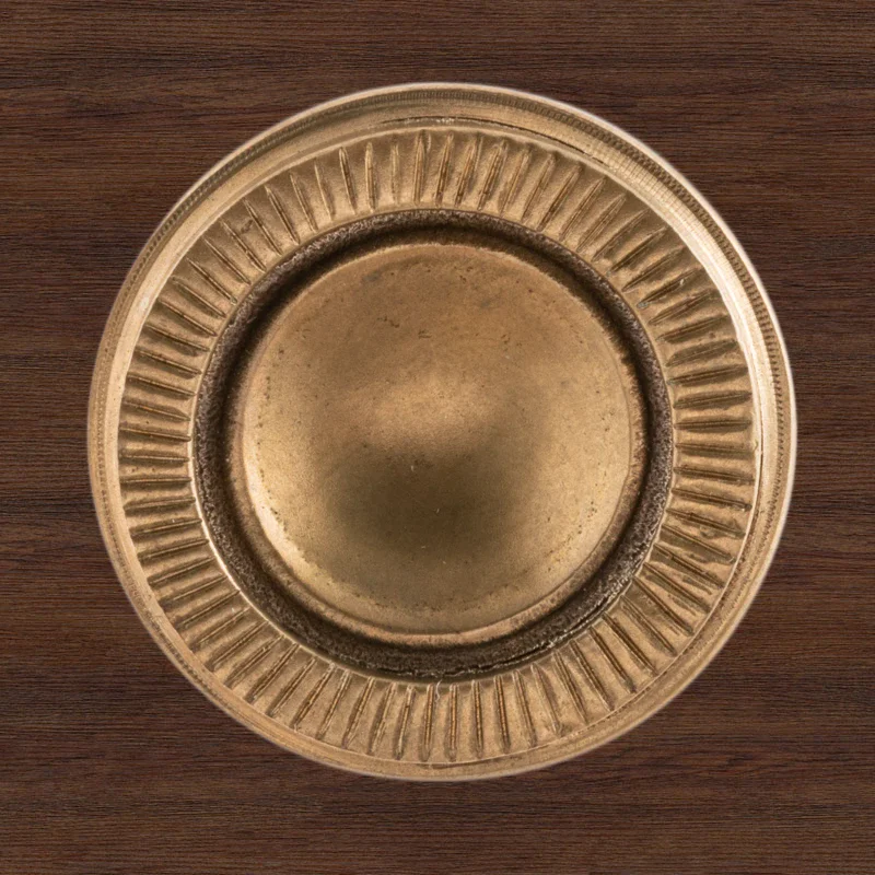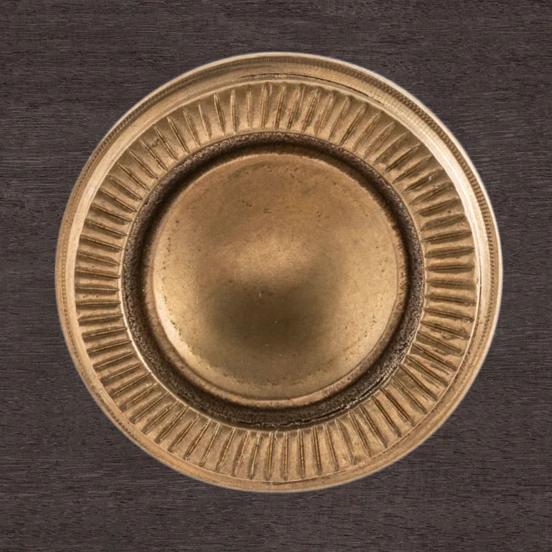 Художественно-производственная мастерская «Калежа» создает уникальную фурнитуру для мебели в стиле модерн. При изготовлении оригинальной ручки-кнопки Ф2837 мы применяли латунь. Необходимая форма получена с помощью бронзового литья. Возможно использование серебрения, золочения, чернения, никелирования или других технологий обработки поверхности. Подобные заказы выполняются в течение трех недель.