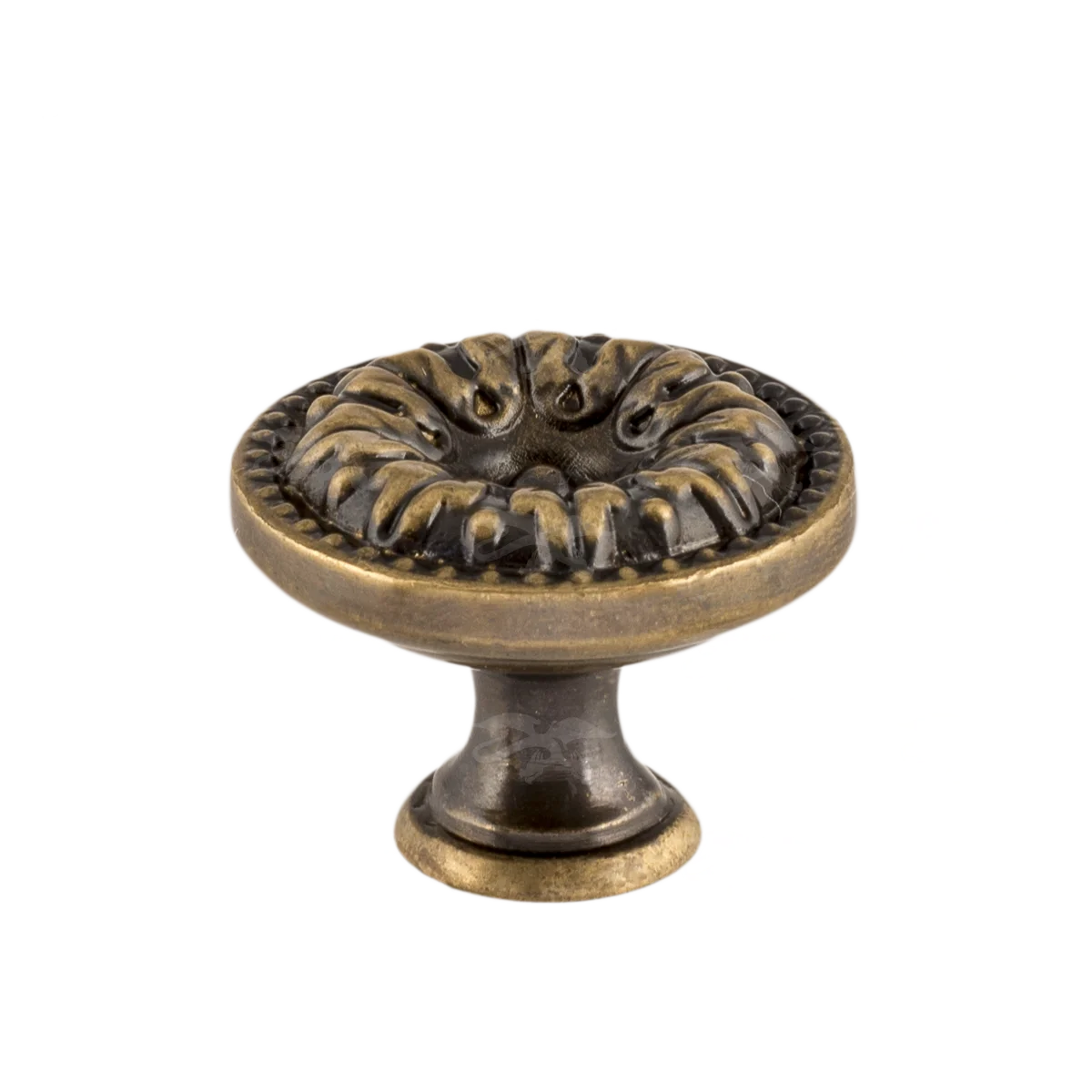 Уникальная ручка-кнопка Ф3704 изготовлена из латуни. Для этого наши мастера использовали художественное литье. При создании изделия в стиле модерн также использовалось чернение. Данная технология позволила выполнить имитацию состаренной поверхности. Мастерская «Калежа» изготавливает подобные работы в течение трех недель. Мебельная фурнитура хорошо удерживает дверцы в закрытом положении.