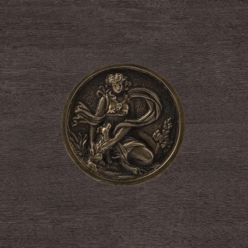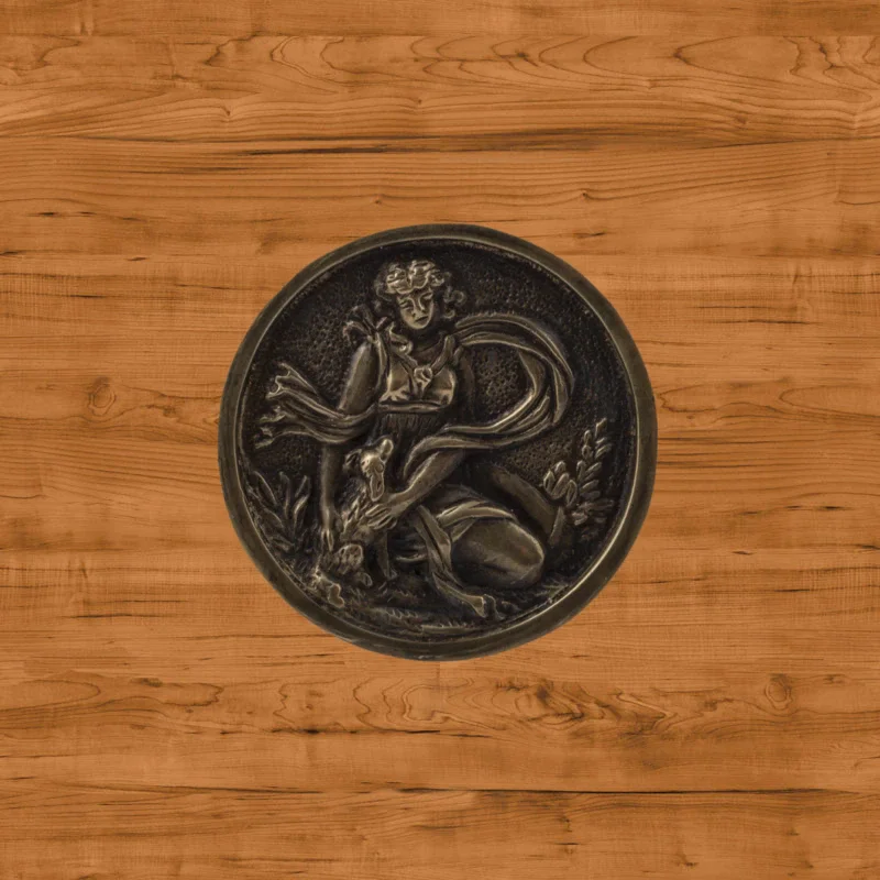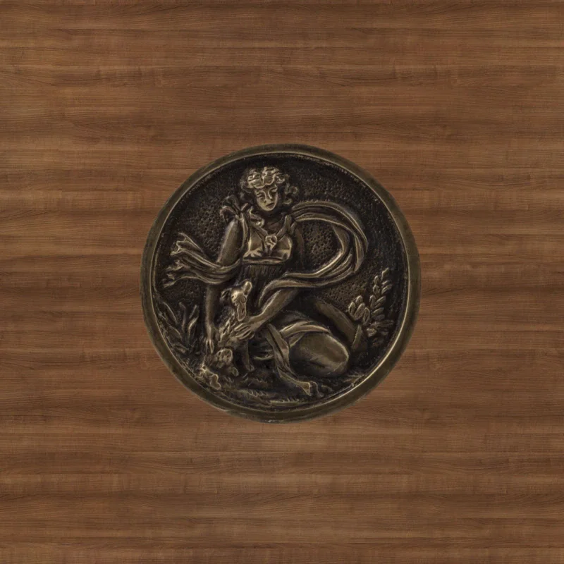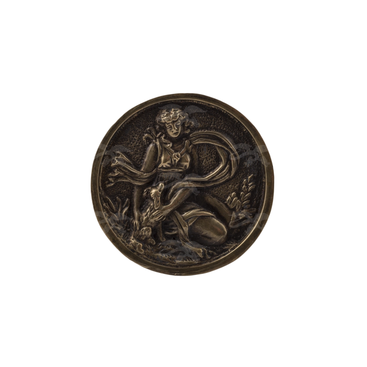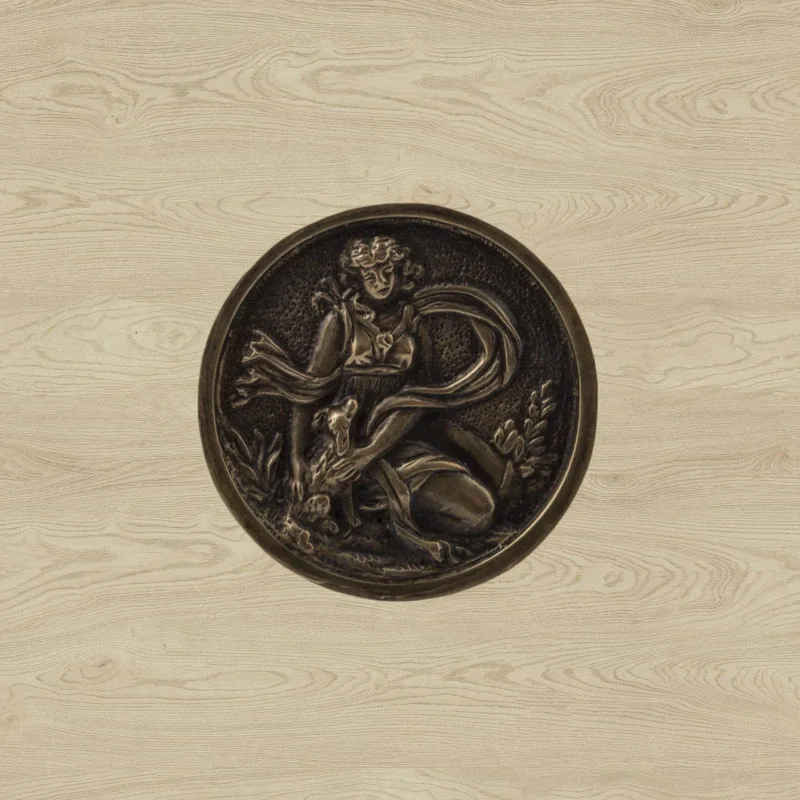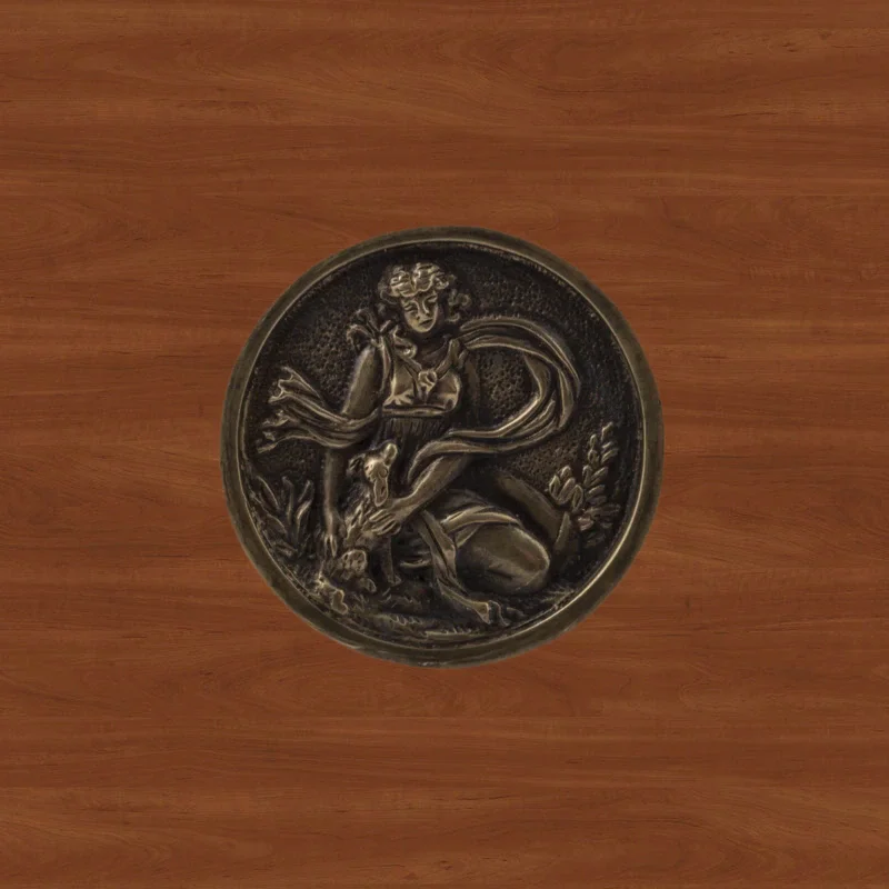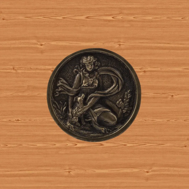 Мастерская «Калежа» выполняет уникальные ручки-кнопки, используя латунь. Оригинальная ручка-кнопка изображает девушку в легком платье, держащую собаку. Работа выполнена по технологии художественного литья. Это изделие подойдет к стилю ампир или классицизм. Наши мастера изготавливают эффектную мебельную фурнитуру по образцу в течение трех недель. Возможно использование ваших эскизов.