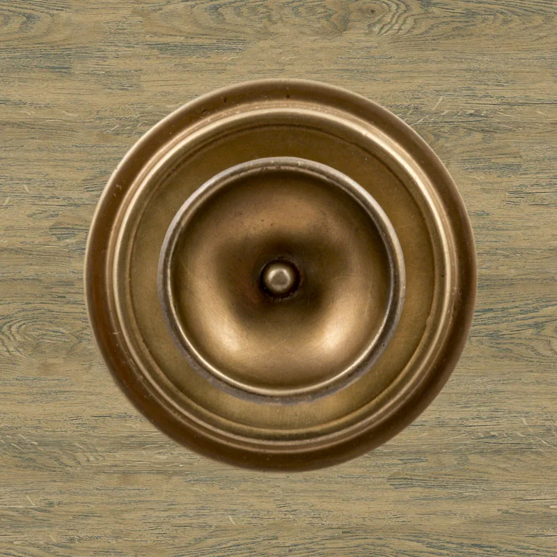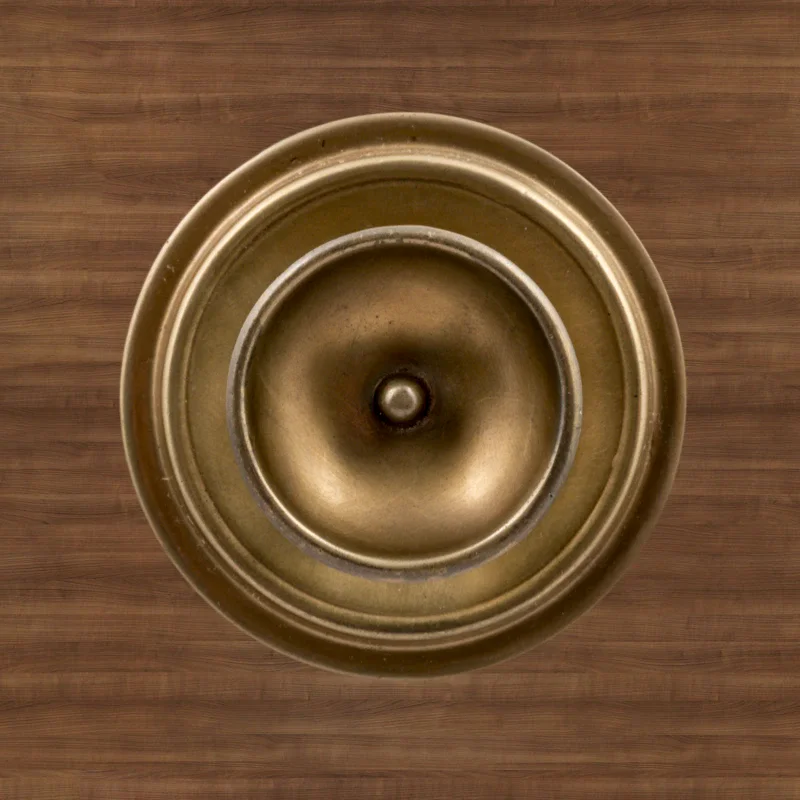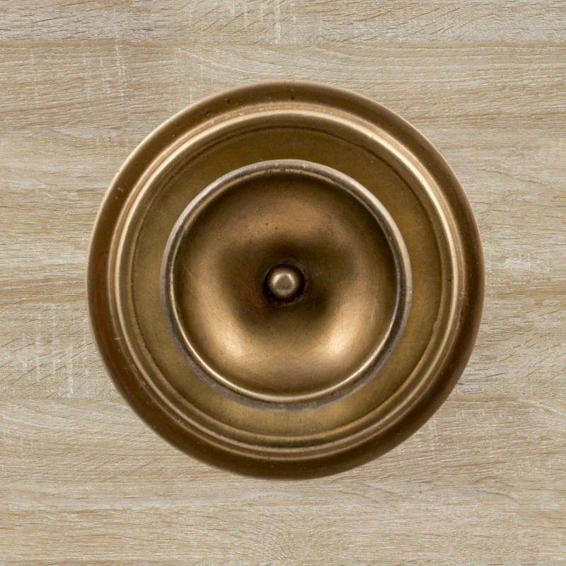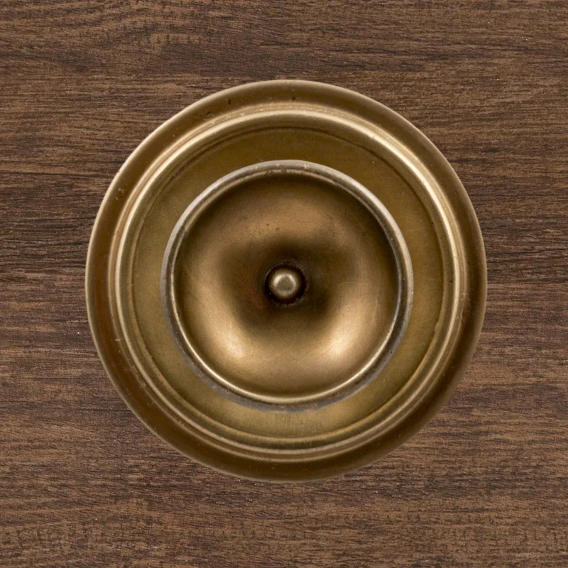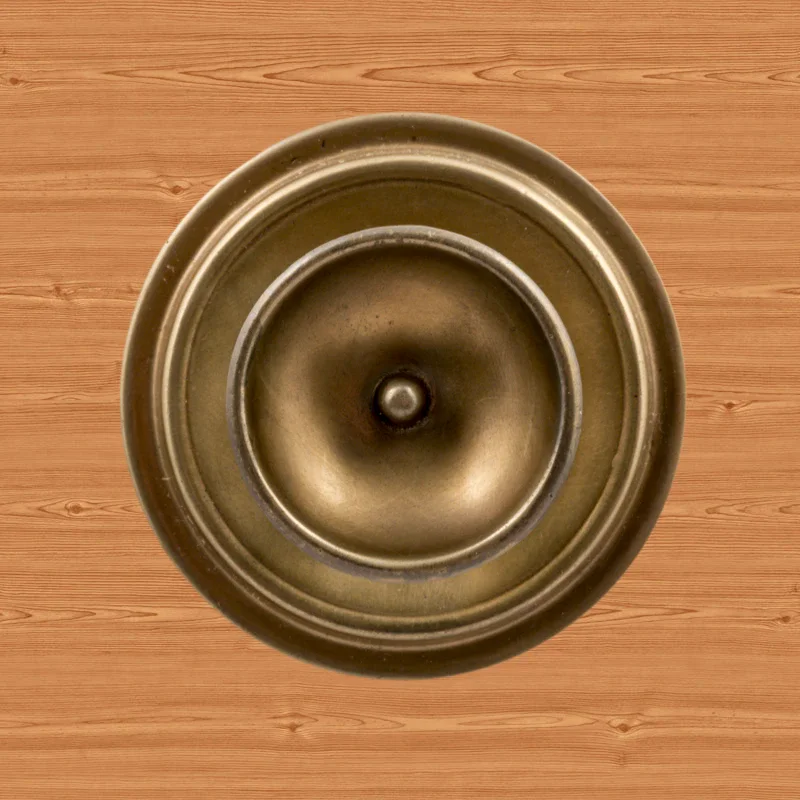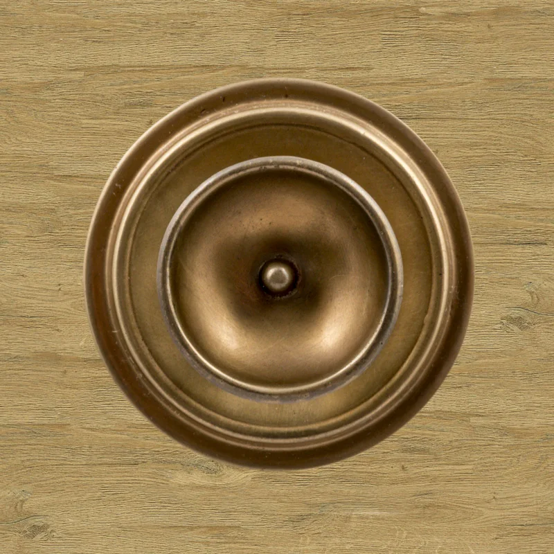 В художественно-производственную мастерскую «Калежа» часто обращаются для заказа ручек-кнопок. Мы изготавливаем их из латуни. Фурнитура хорошо удерживает дверь в закрытом положении и предотвращает нежелательное движение полотна. Ручка-кнопка имеет необычное оформление в виде двух окружностей разного размера. Для оформления декоративных элементов наши мастера применяют технологию литья. Возможно изготовление по представленному образцу или эскизам заказчика.