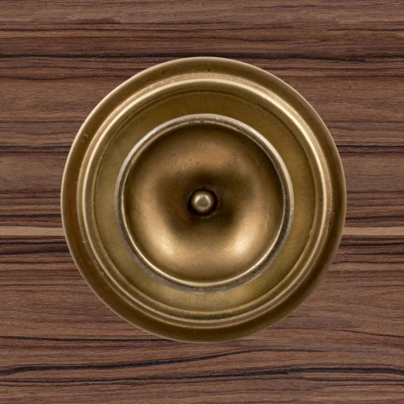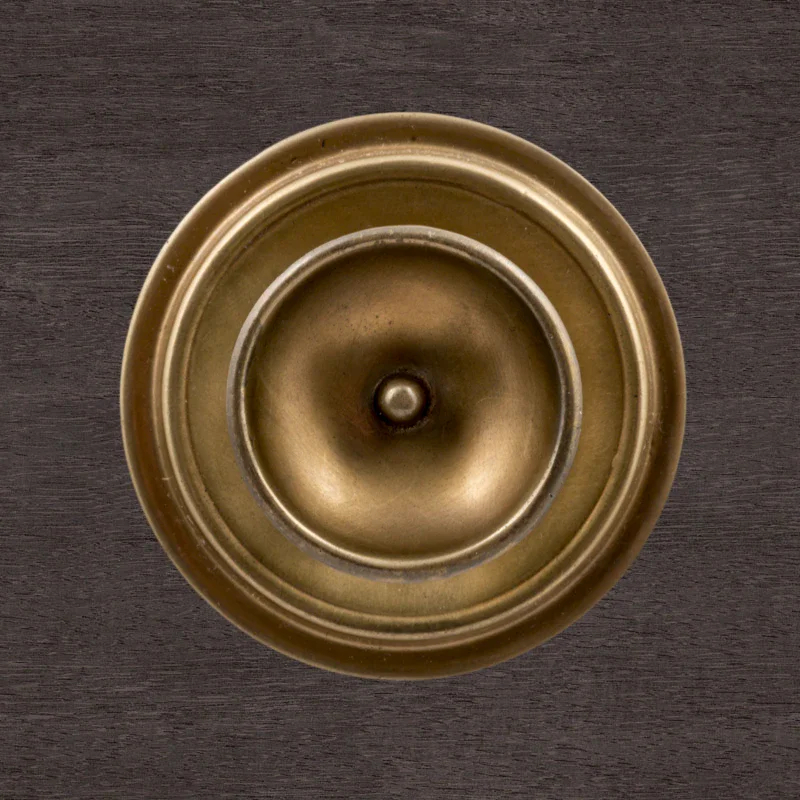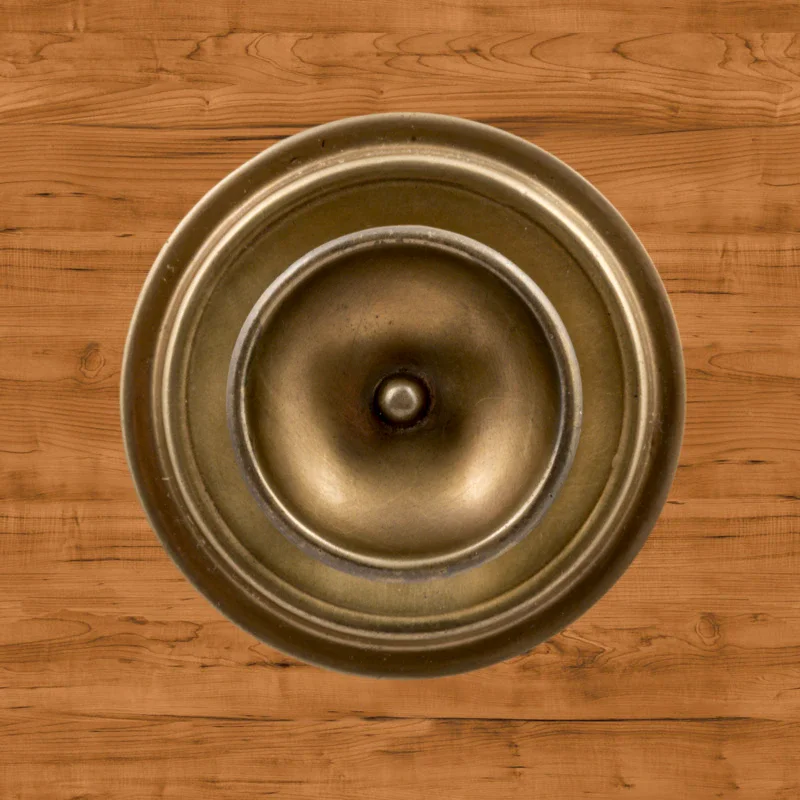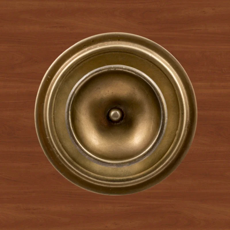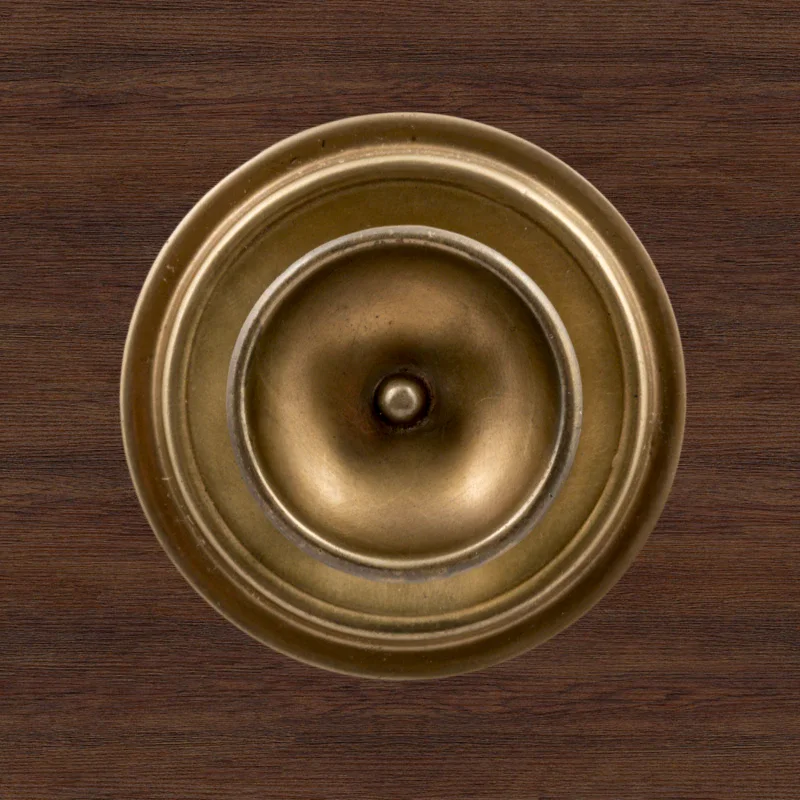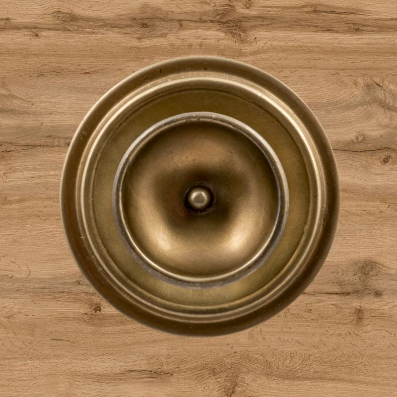 В художественно-производственную мастерскую «Калежа» часто обращаются для заказа ручек-кнопок. Мы изготавливаем их из латуни. Фурнитура хорошо удерживает дверь в закрытом положении и предотвращает нежелательное движение полотна. Ручка-кнопка имеет необычное оформление в виде двух окружностей разного размера. Для оформления декоративных элементов наши мастера применяют технологию литья. Возможно изготовление по представленному образцу или эскизам заказчика.