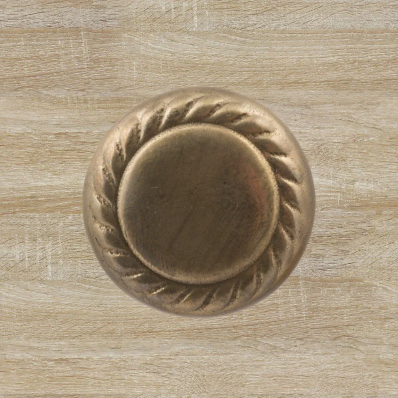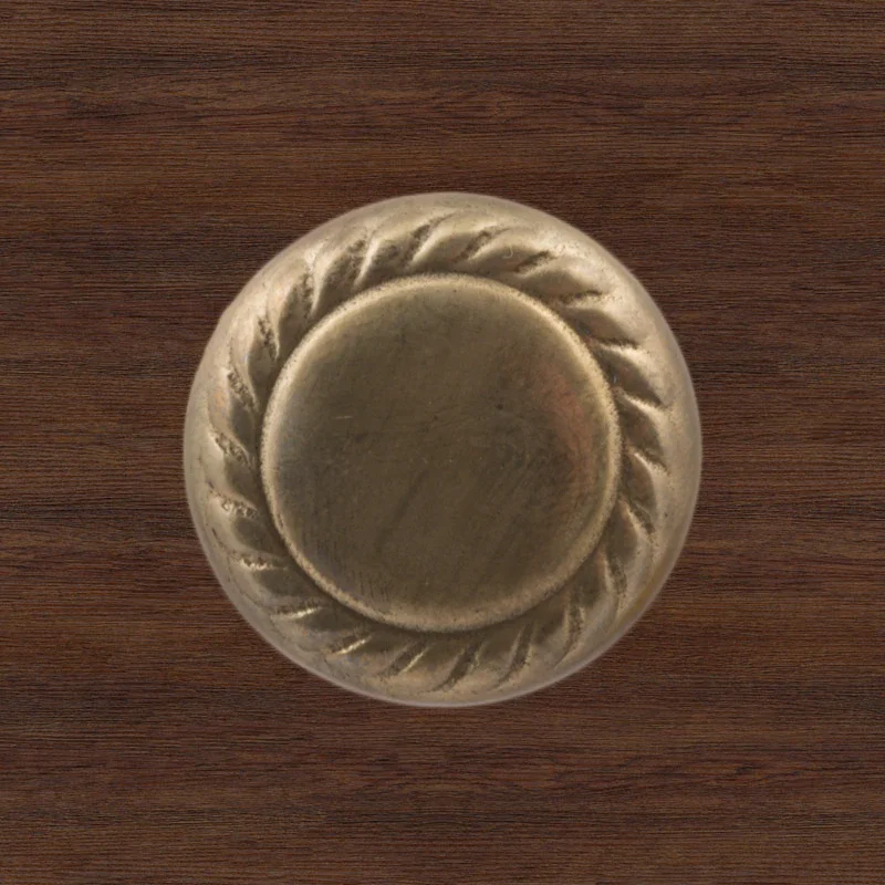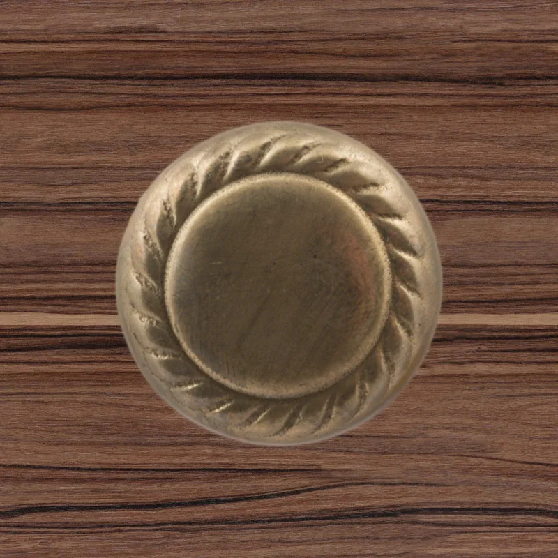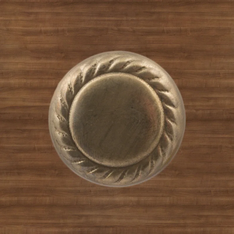 Мастерская «Калежа» изготавливает мебельную фурнитуру. Ручка-кнопка создана из латуни. Наши специалисты использовали технологию бронзового литья. В центре ручка гладкая, а по бокам выполнены точные линии. Фурнитура хорошо удерживает дверь в закрытом положении и предотвращает нежелательное движение полотна. Срок изготовления изделия – три недели.