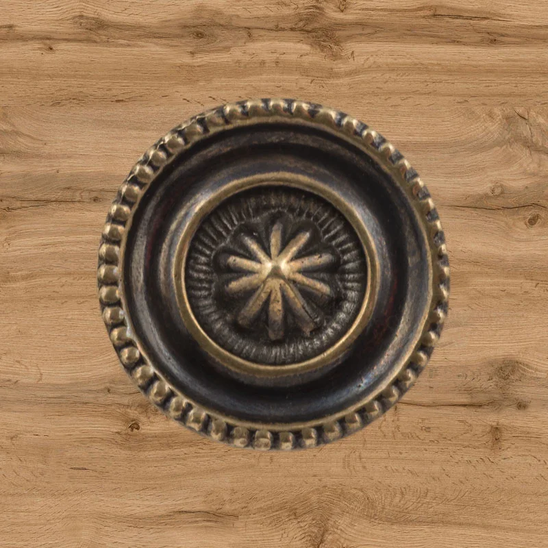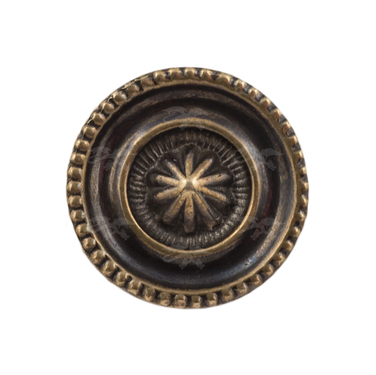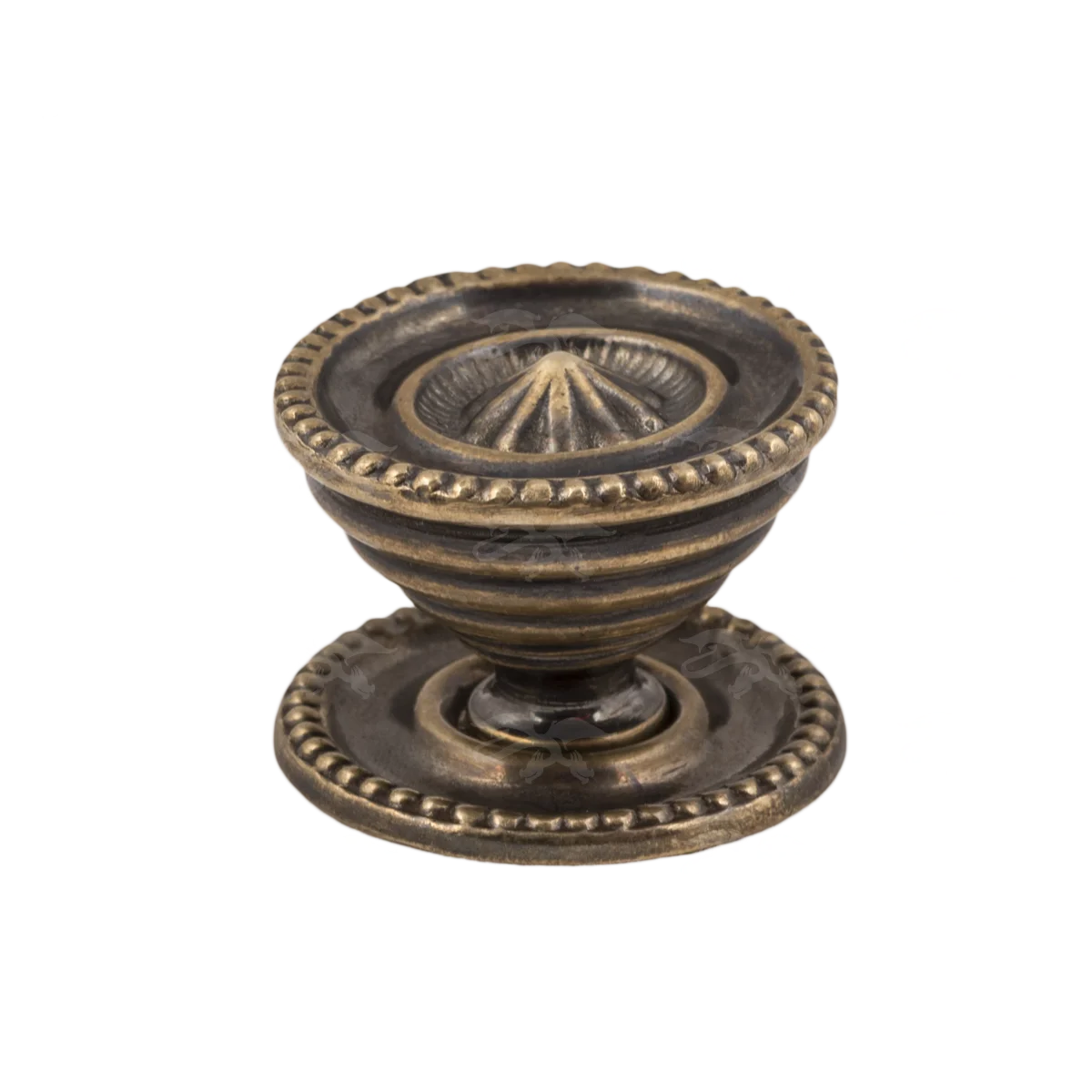 Мастерская «Калежа» выполняет мебельную фурнитуру в стиле модерн. Основная технология производства – бронзовое литье из латуни. В оформлении оригинальной ручки-кнопки можно увидеть растительные мотивы. Чтобы создать имитацию состаренной поверхности, мастера использовали чернение. По вашему заказу подобная работа с уникальными декоративными элементами будет выполнена всего за три недели.