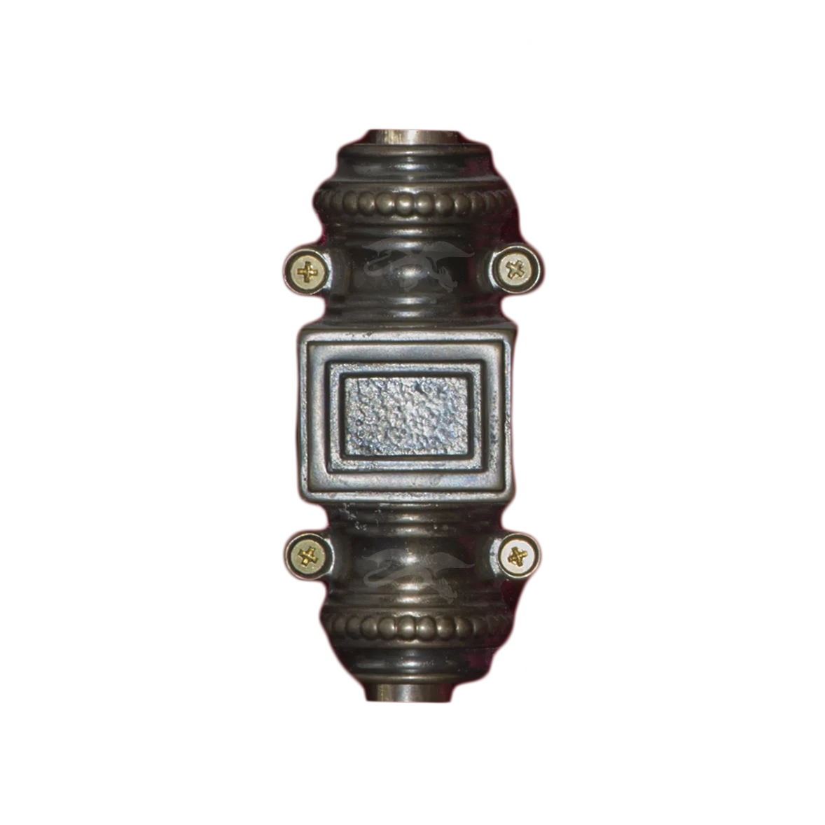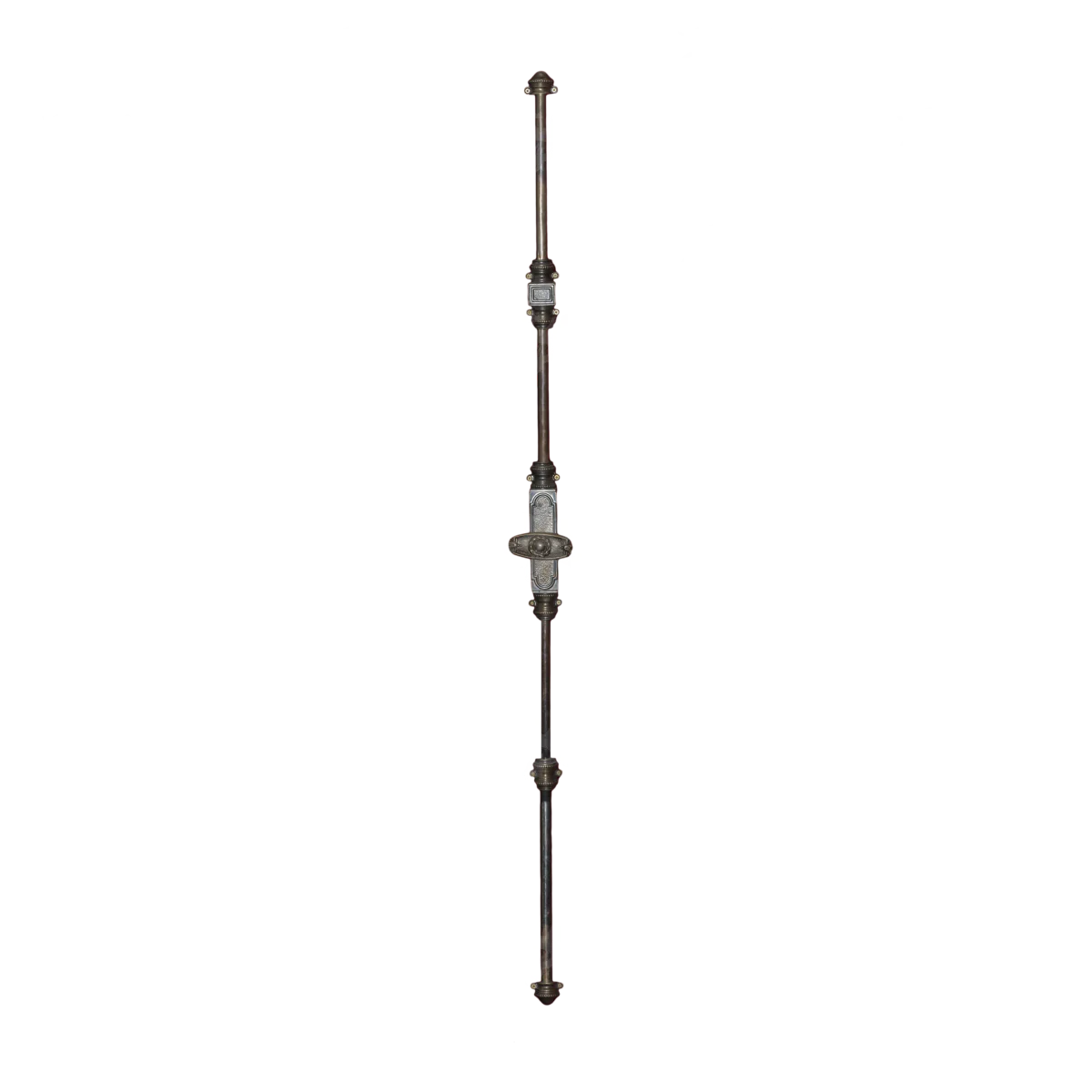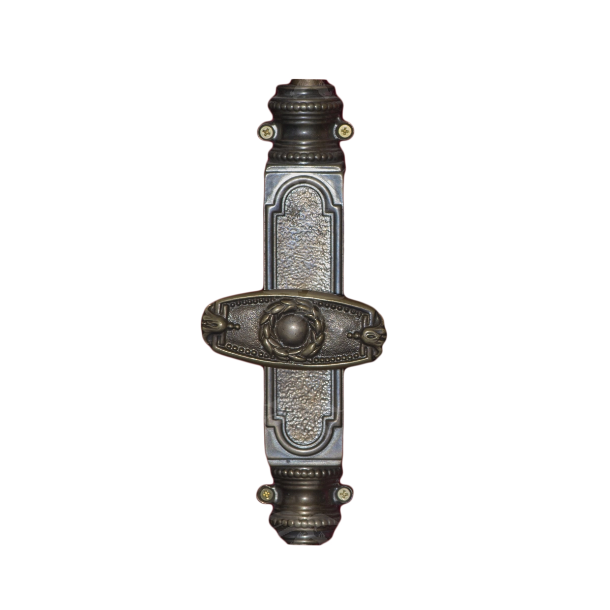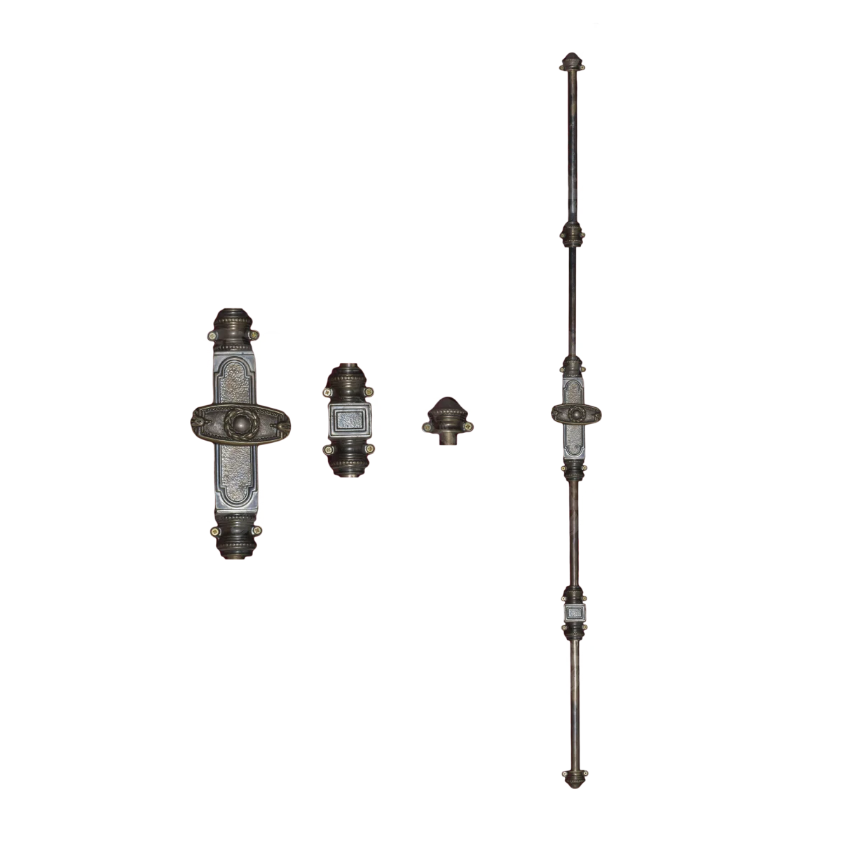 В каталоге мастерской «Калежа» можно увидеть различные варианты оконной фурнитуры, отвечающие всем современным требованиям. Предлагаем кремоны для интерьеров, оформленных под старину. Представленное изделие является элегантным вариантом раздвижной фурнитуры, которая сочетает в себе функции шпингалетов и ручек. Бронза, используемая при изготовлении, превращает изделие в прочный и долговечный механизм. Данная кремона снабжена тонким орнаментом. Мастерская «Калежа» может выполнить фурнитуру в похожем стиле. Также можно заказать шпингалет оконный.