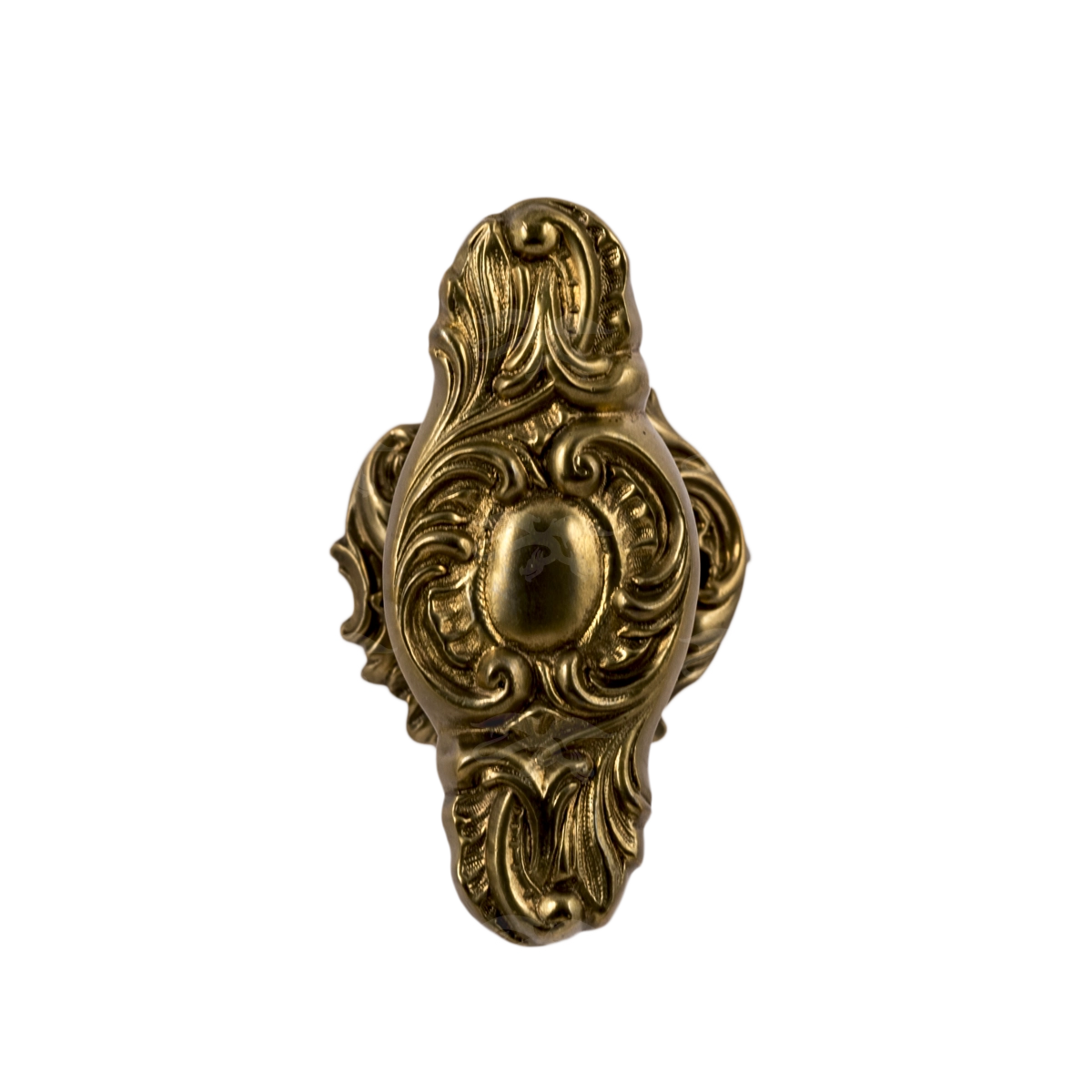 Розетка ручки оформлена в виде рокайльных завитков (ребристые узоры морских раковин). Использование по бокам небольших волнообразых завитков Витрувия придает композиции романтичный стиль, характерный для эпохи барокко и рококо.