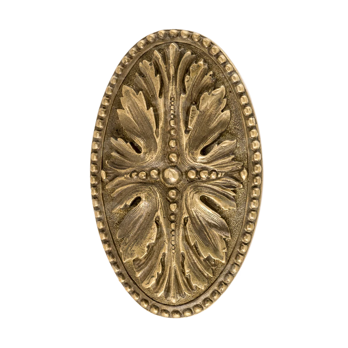 Профессионалы мастерской «Калежа» создают стильные и надежные оконные ручки. В оформлении данного изделия можно увидеть элементы стиля барокко. Поверхность фурнитуры снабжена пышным растительным орнаментом. С помощью таких ручек можно создать модный декор в духе старины. Изделия из бронзы отличаются прочностью, надежностью и служат хозяевам долгие годы. В процессе работы специалисты мастерской «Калежа» применяли художественное литье. Возможно выполнение срочных заказов на фурнитуру в максимально короткие сроки.
