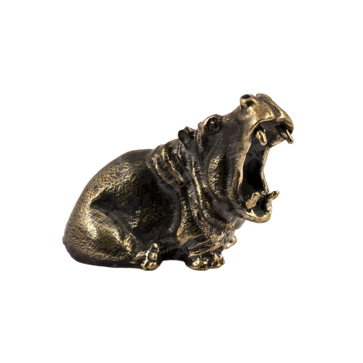 Художественно-производственная мастерская «Калежа» создает оригинальные статуэтки из латуни. Бегемот с раскрытой пастью служит образцом для них. При создании оригинальной фигурки животного мы использовали бронзовое литье. Чтобы получить сложный рельеф, мастера применяли чернение. Выполнение подобного заказа занимает до трех недель. Возможно использование предоставленных эскизов.