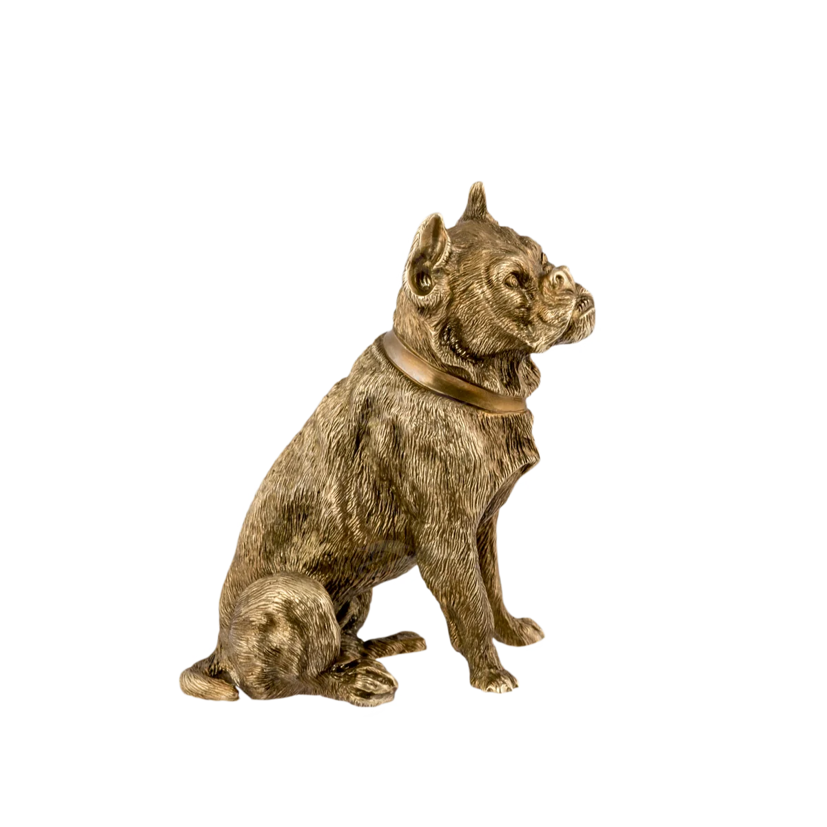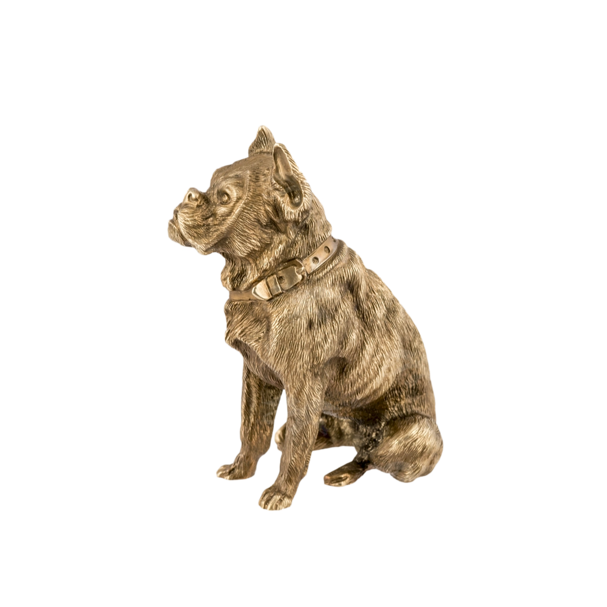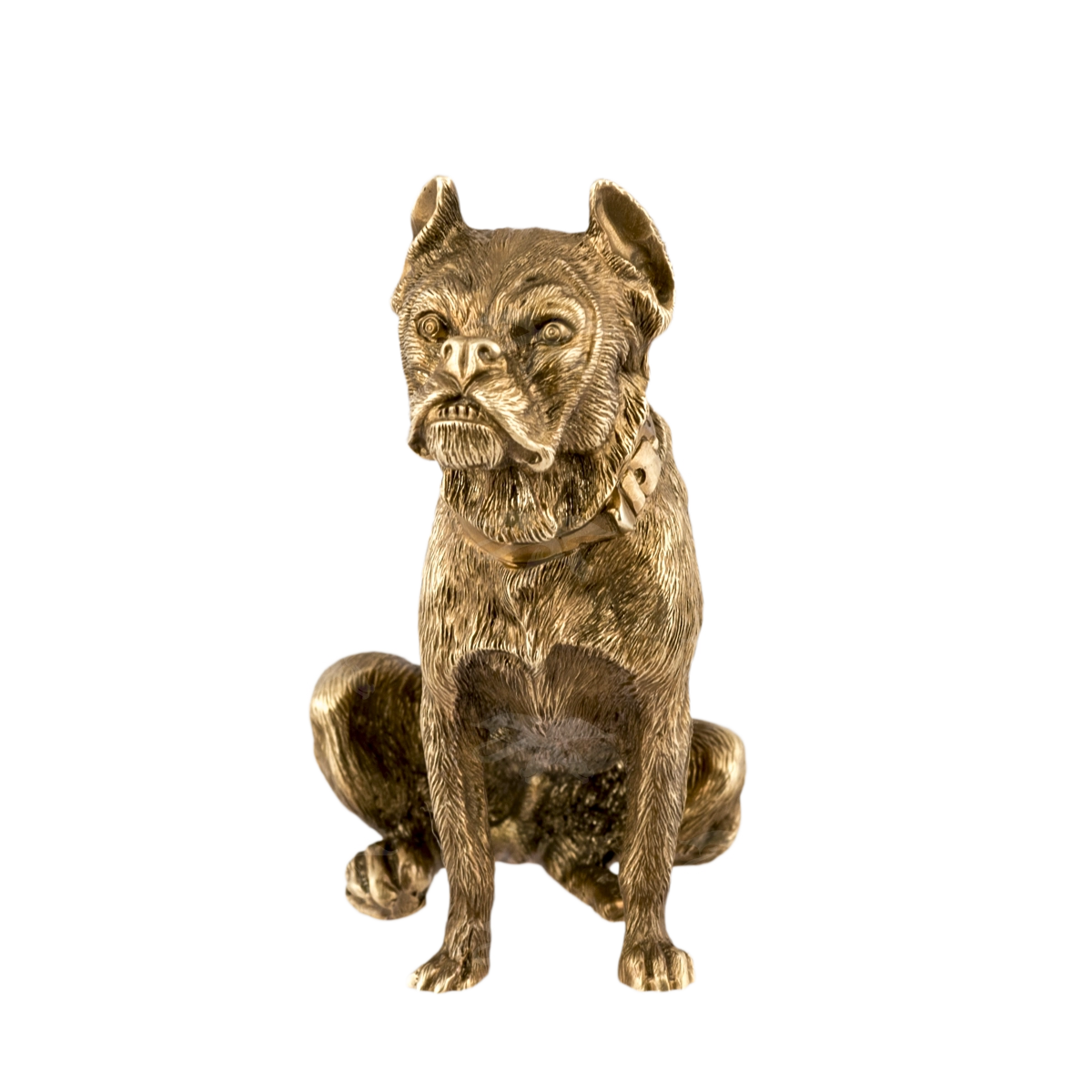 В мастерской «Калежа» часто заказывают оригинальные сувениры из латуни. Используя художественное литье и технологии гравировки, мы изготовили фигурку боксера. При оформлении фигурки собаки также применялось чернение. Приступая к реализации таких дизайн-проектов, мы можем использовать эскизы клиентов. Срок выполнения статуэтки, изображающей пса, составляет три недели.