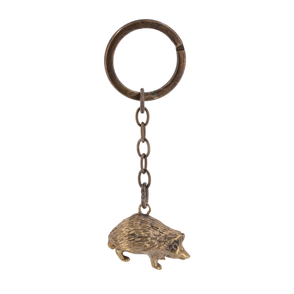 Брелок, выполненный из металла методом художественного литья, в виде фигурки ежа. Это миниатюрное изделие снабжено надежной цепочкой и кольцом для ключей.