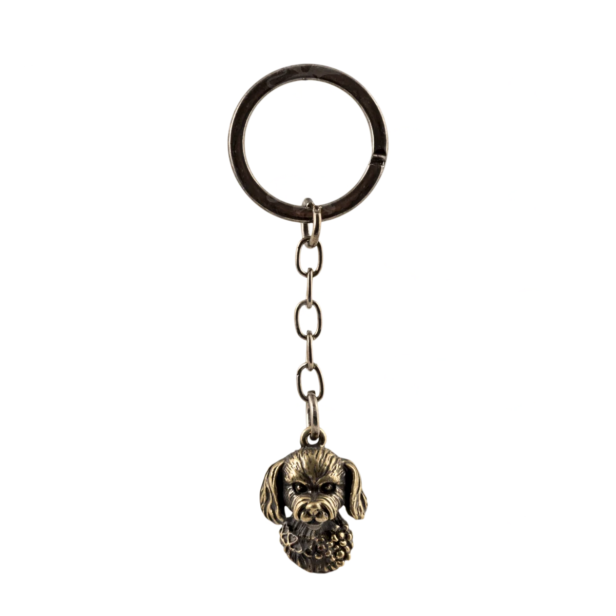 Мастерская «Калежа» изготавливает креативные миниатюрные аксессуары. Уникальный брелок выполнен в форме головы спаниеля и может служить образцом для новых подобных работ. Создавая его из латуни, специалисты использовали бронзовое литье. Также применялось чернение. Срок изготовления фигурок собак − до трех недель. Возможно выполнение заказа с использованием предоставленных эскизов.