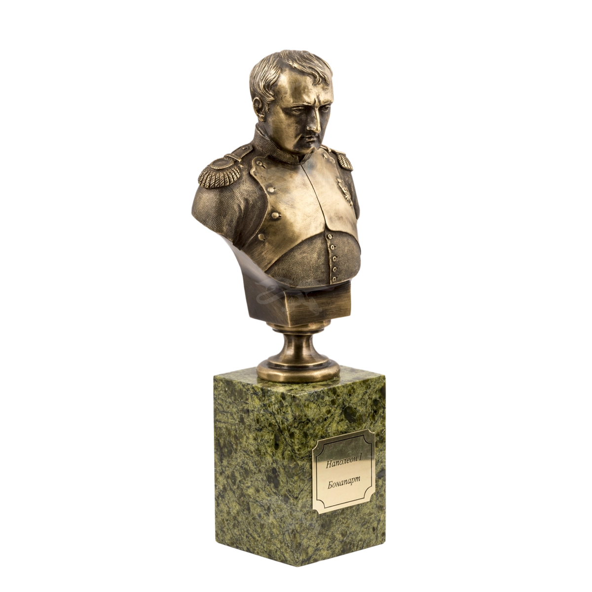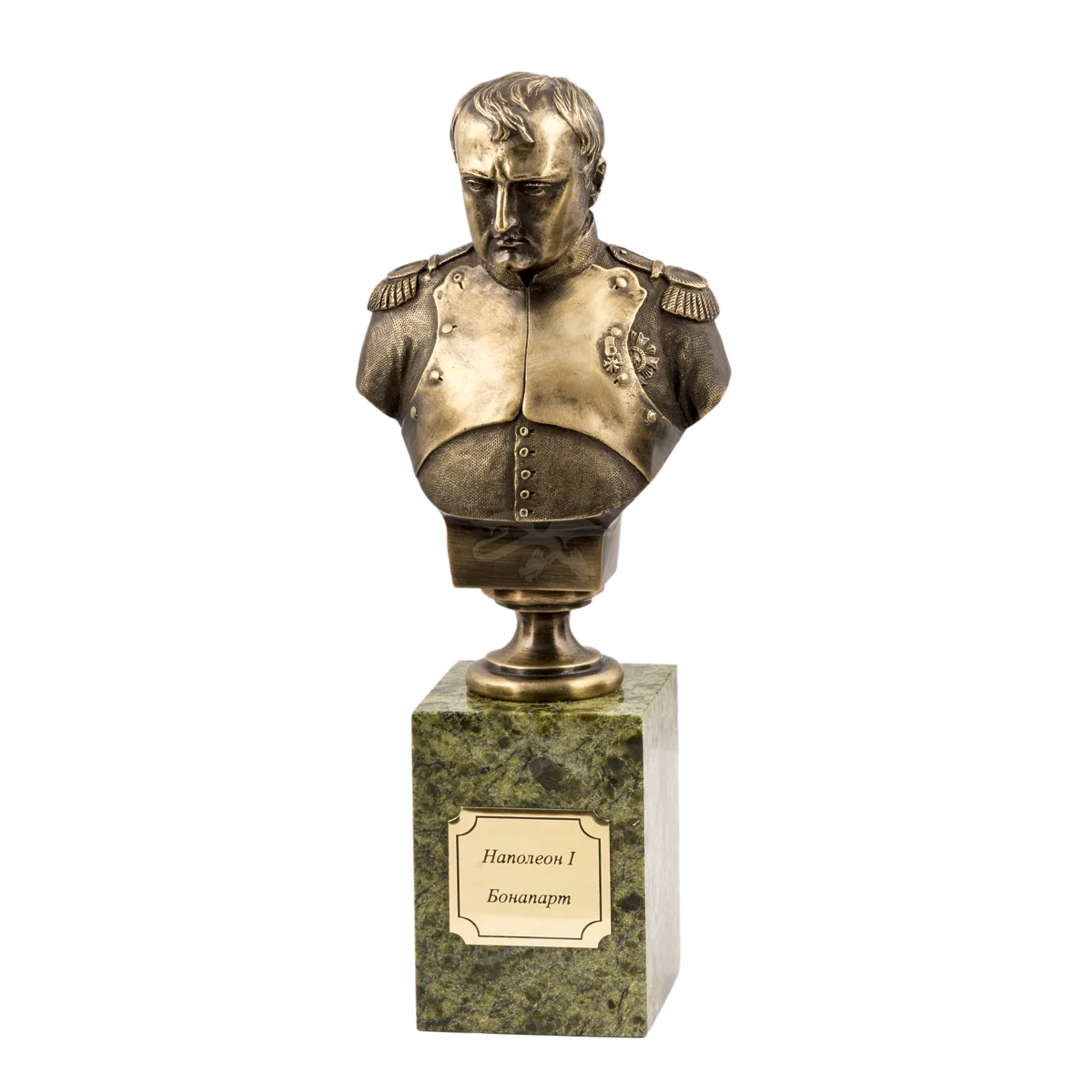 Бюст французского императора Наполеона от мастерской «Калежа»— совершенство в миниатюре. Мастер применил технику «выплавления». Расплавленным металлом (латунь) была заполнена заготовленная форма, а затем фигурка подверглась высокоточной обработке. Так художник добился полного сходства с оригиналом. Можно рассмотреть даже Орден Почетного легиона на кителе военачальника. Взгляд Бонапарта задумчив: не надо воевать с Россией!