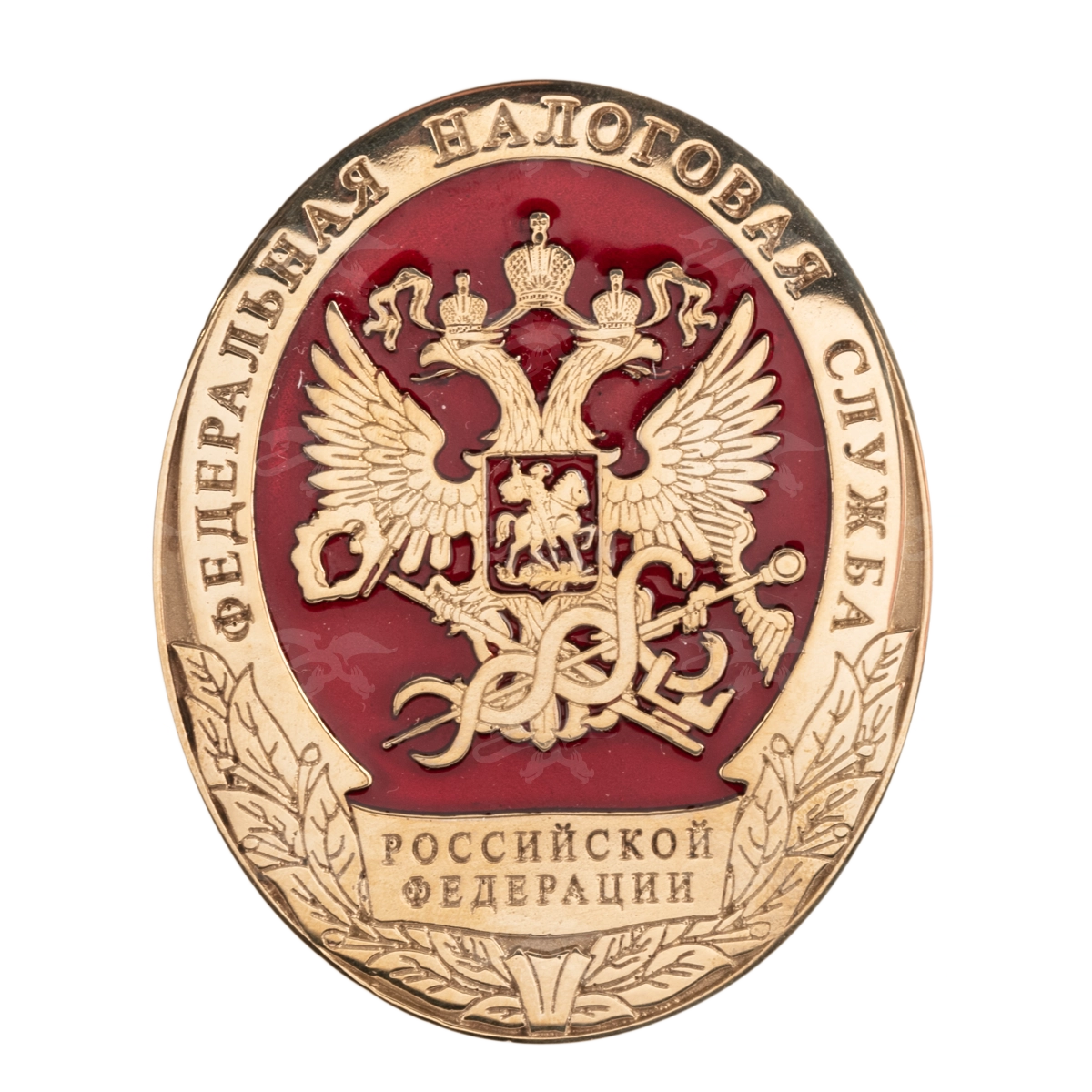 Мастерская «Калежа» создает уникальные аксессуары для сотрудников Федеральной налоговой службы. При изготовлении эмблемы «ФНС РФ» в форме герба ведомства специалисты использовали латунь и работали по технологии бронзового литья. Фон и щит с изображением Георгия Победоносца окрашены ювелирной эмалью красного цвета. Создание новых сувениров занимает от трех недель.