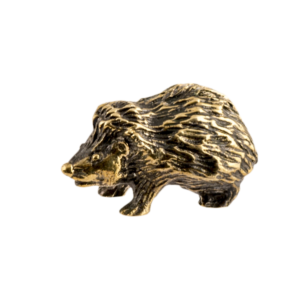 Мастерская «Калежа» изготавливает статуэтки лесных зверей из латуни. Ежик маленький выполнен при помощи бронзового литья. Чтобы получить рельефные изображение колючек и шерсти, мы использовали химическую гравировку и чернение. Наши мастера могут изменить позу животного или добавить уникальные декоративные элементы. Также мы работаем с эскизами, предоставленными клиентами.