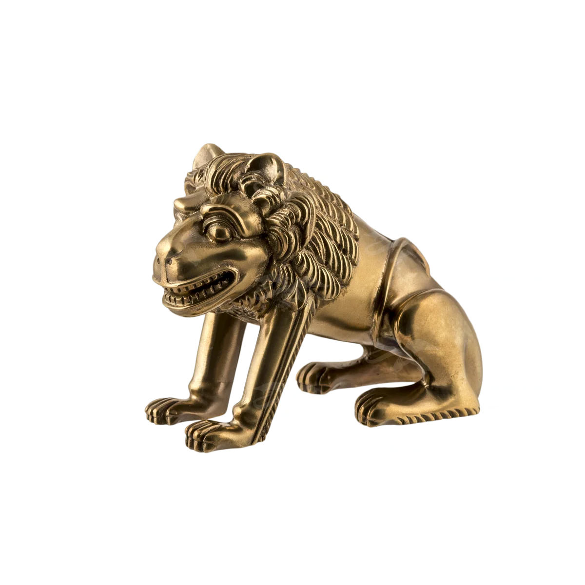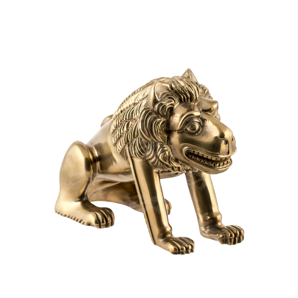 Мастерская «Калежа» изготавливает разнообразные статуэтки. Уникальная фигурка «Лев сидящий» – образец подобной работы из латуни. Чтобы получить объемное изображение царя зверей, наши специалисты использовали бронзовое литье. В своей работе мастера также применяли чернение. Срок выполнения подобного заказа составляет три недели. Также мы изготавливаем подарки по предоставленным эскизам.