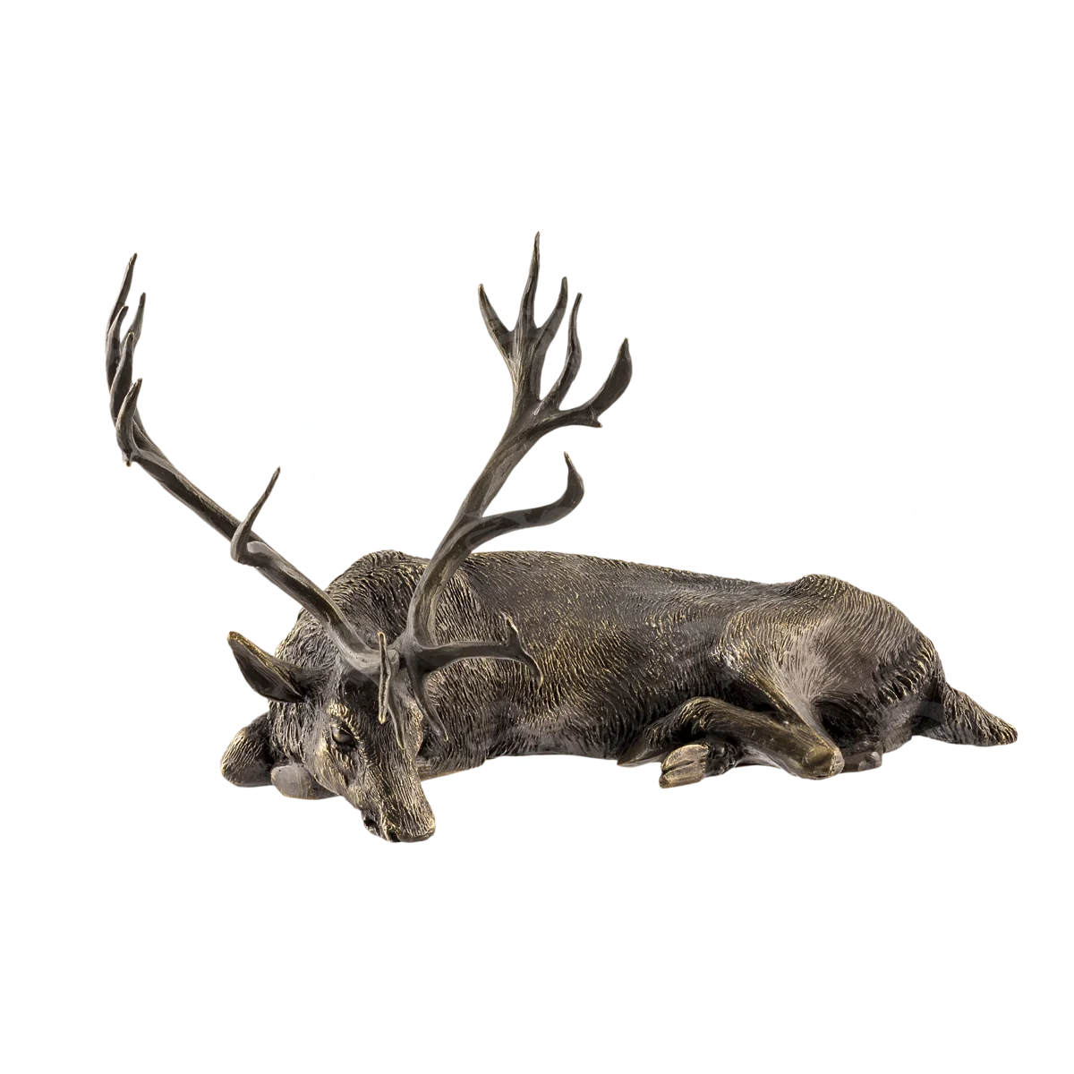 Статуэтка выполнена в виде благородного оленя, который безмятежно отдыхает. Изделие изготовлено из бронзы. Полированный металл подчеркивает безупречное исполнение каждой детали. В мастерской «Калежа» создаются уникальные корпоративные подарки, которые отражают особенности каждой компании. Опытные дизайнеры разрабатывают эскизы, по которым производятся эксклюзивные изделия. Это означает, что каждая награда имеет неповторимые элементы и является единственной в своем роде.