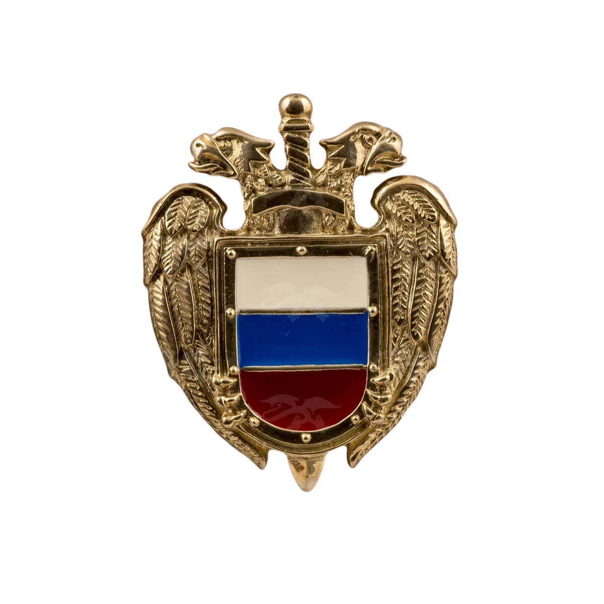 Художественно-производственная мастерская «Калежа» создает геральдические сувениры для государственных учреждений. Герб ФСО из латуни выполнен нашими специалистами с помощью бронзового литья. В центре композиции – двуглавый орел, который держит щит, окрашенный ювелирной эмалью в цвета российского триколора. Срок изготовления подобной сувенирной продукции составляет три недели.