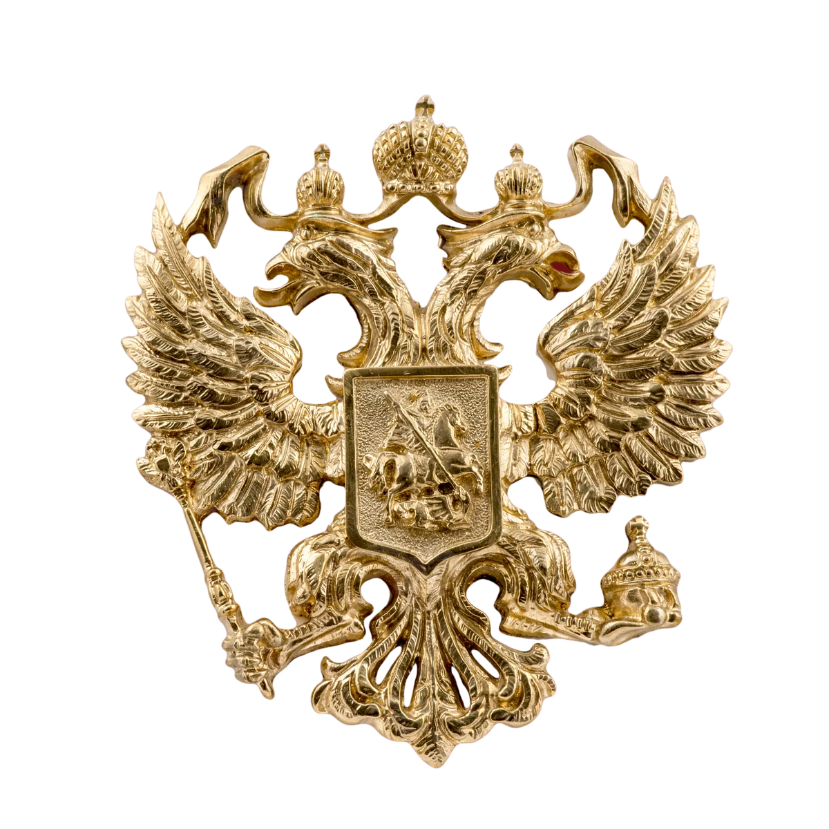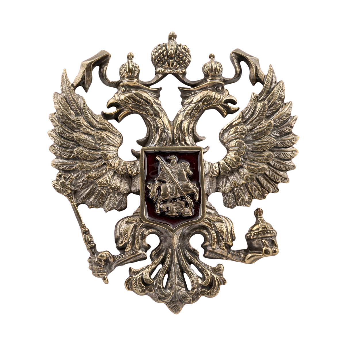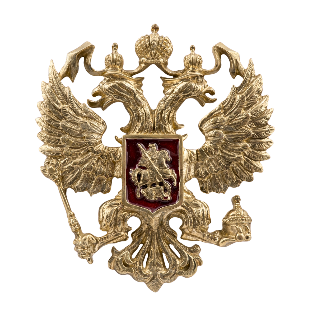 Представленный герб России изготовлен по заказу одного из государственных учреждений. В качестве материалов специалисты мастерской «Калежа» применяли бронзу и цветную эмаль. Геральдика подходит для декорирования книг, папок, ежедневников и т. п. Вы можете заказать российский герб, выполненный в похожем стиле. Мастерская «Калежа» гарантирует качественное выполнение каждого индивидуального заказа.