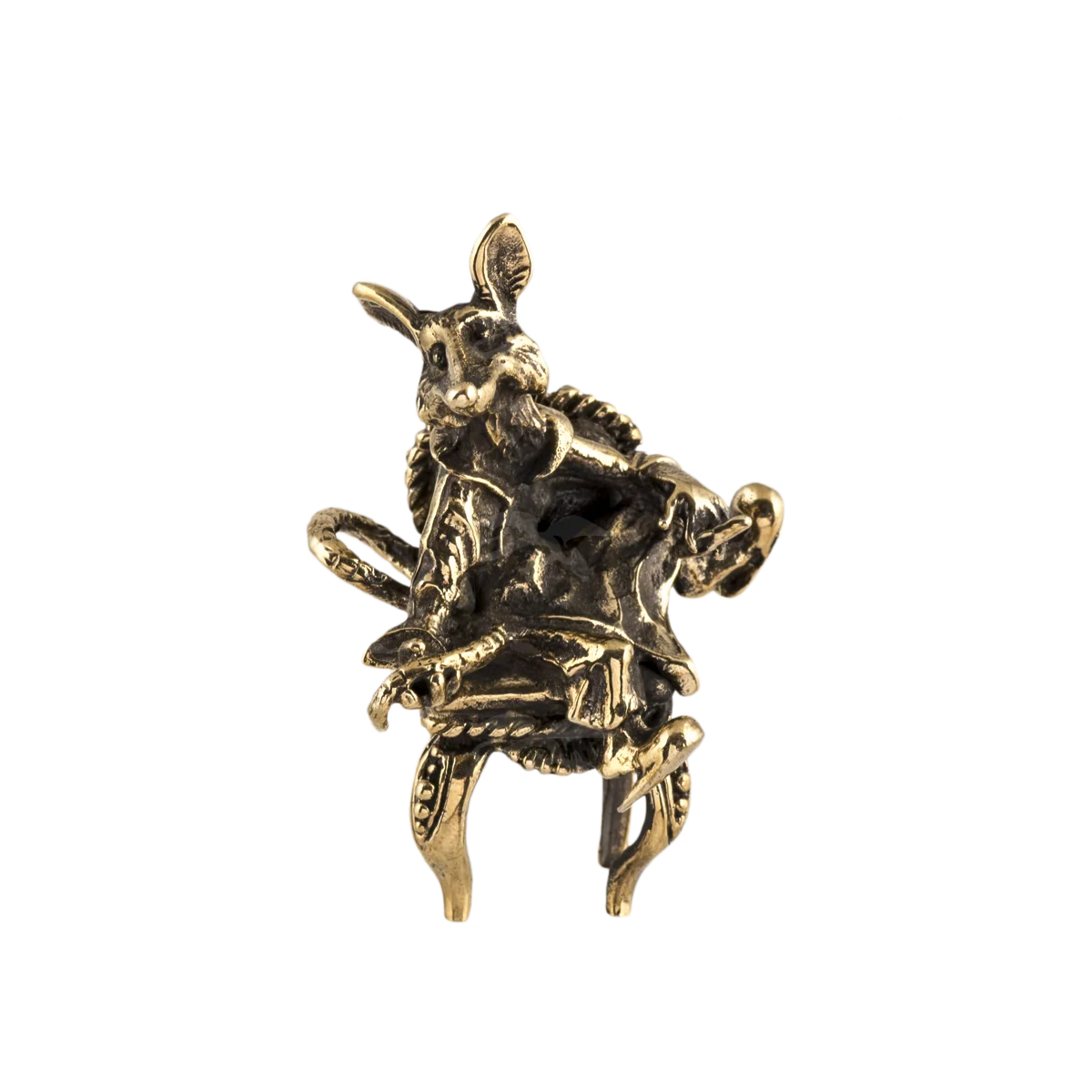 Мастерская «Калежа» изготавливает уникальные юмористические сувениры, изображающие разных животных. Примером для такой работы может служить оригинальная крыса на стуле с сигарой, выполненная из латуни. Создавая забавную фигурку, мы использовали художественное литье, чернение и золочение. На изготовление подобного коллекционного подарка уходит до трех недель.