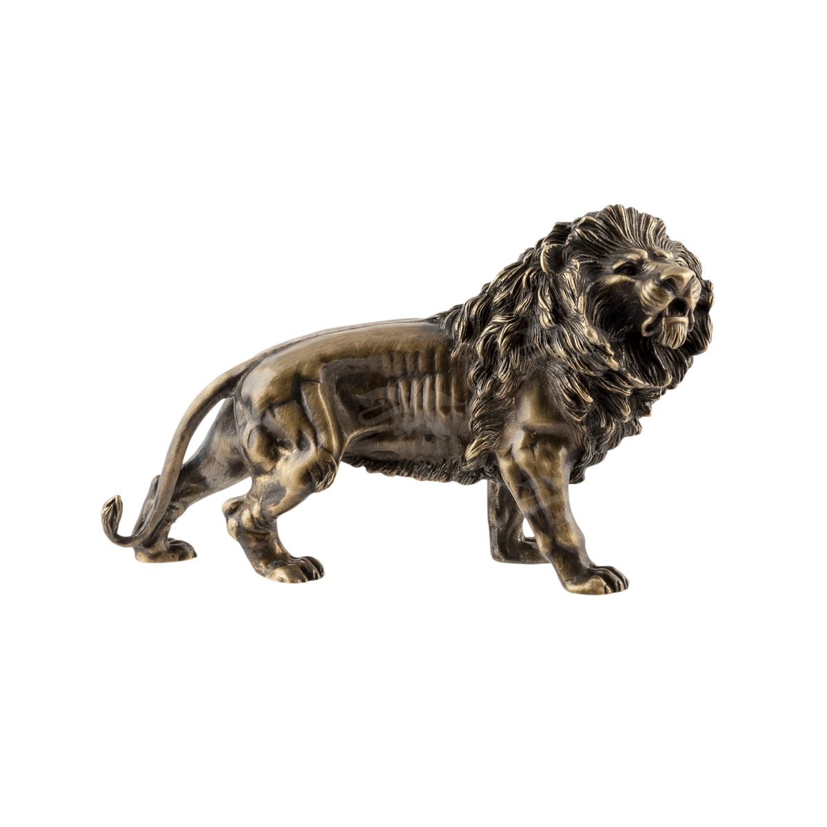 Мастерская «Калежа» изготавливает статуэтки животных дикой африканской природы. Лев может быть образцом для новых работ. Он выполнен из латуни с использованием технологии бронзового литья. Для реалистичной имитации шерсти царя зверей мы использовали чернение. Изготовление таких сувениров занимает около трех недель. Также возможно использование подготовленных заказчиком эскизов.