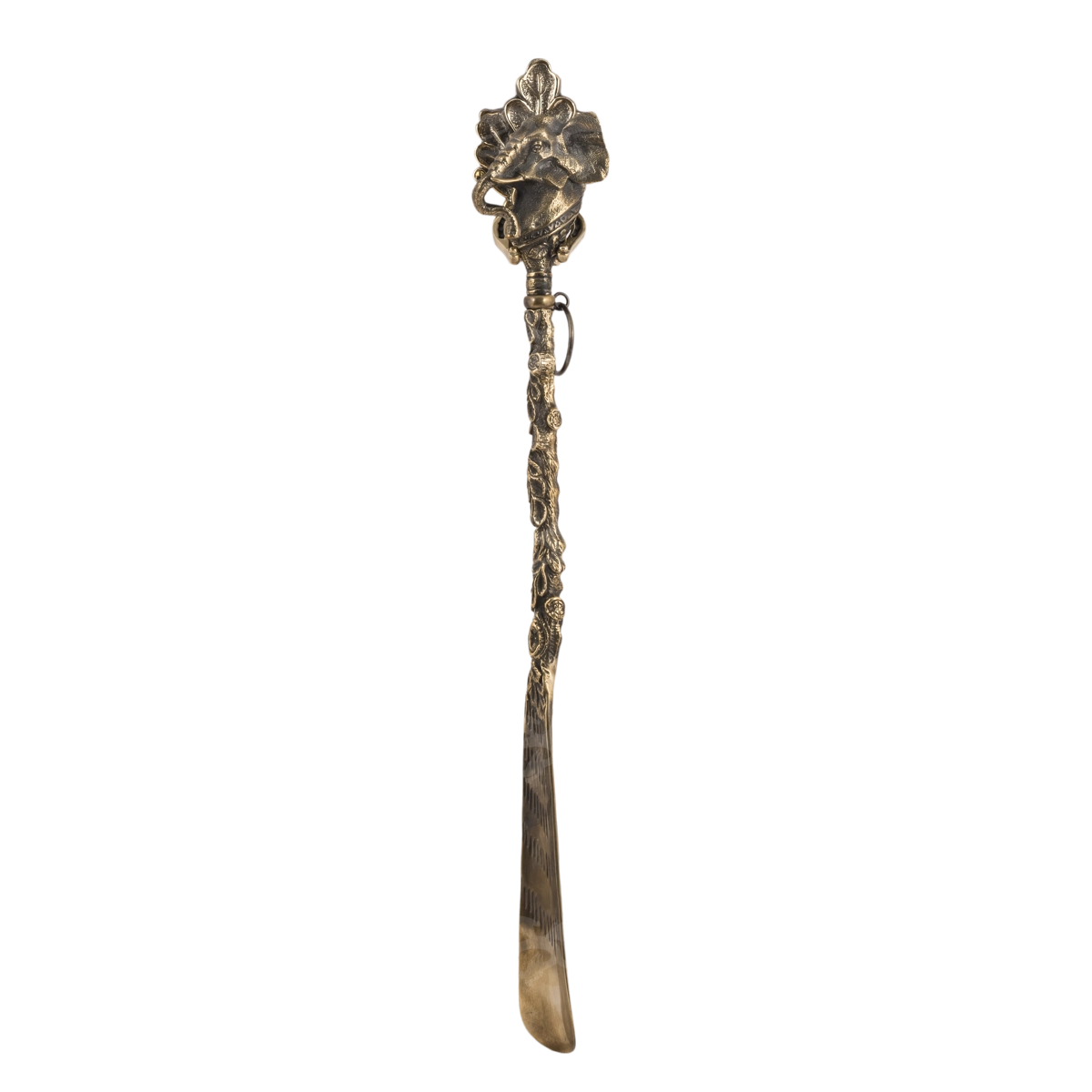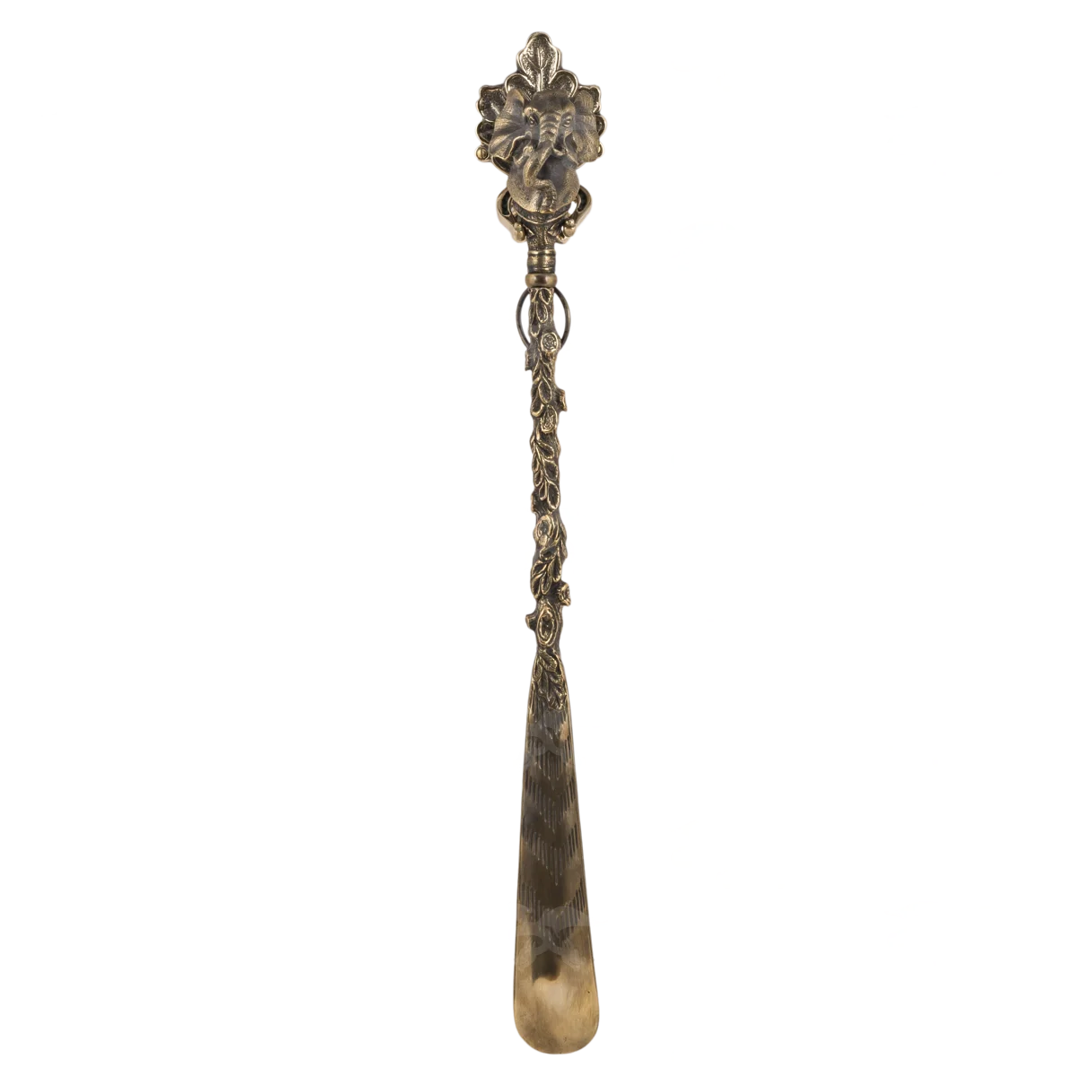 Мастерская «Калежа» создает аксессуары из латуни. Образцом для новых работ нередко служит ложка для обуви Слон. Все элементы изготовлены по технологии бронзового литья. Наконечник выполнен в форме головы животного с ушами и хоботом. Приспособление подходит для ежедневного использования. С его помощью можно быстрее и легче надевать обувь, защищая ее от деформации.