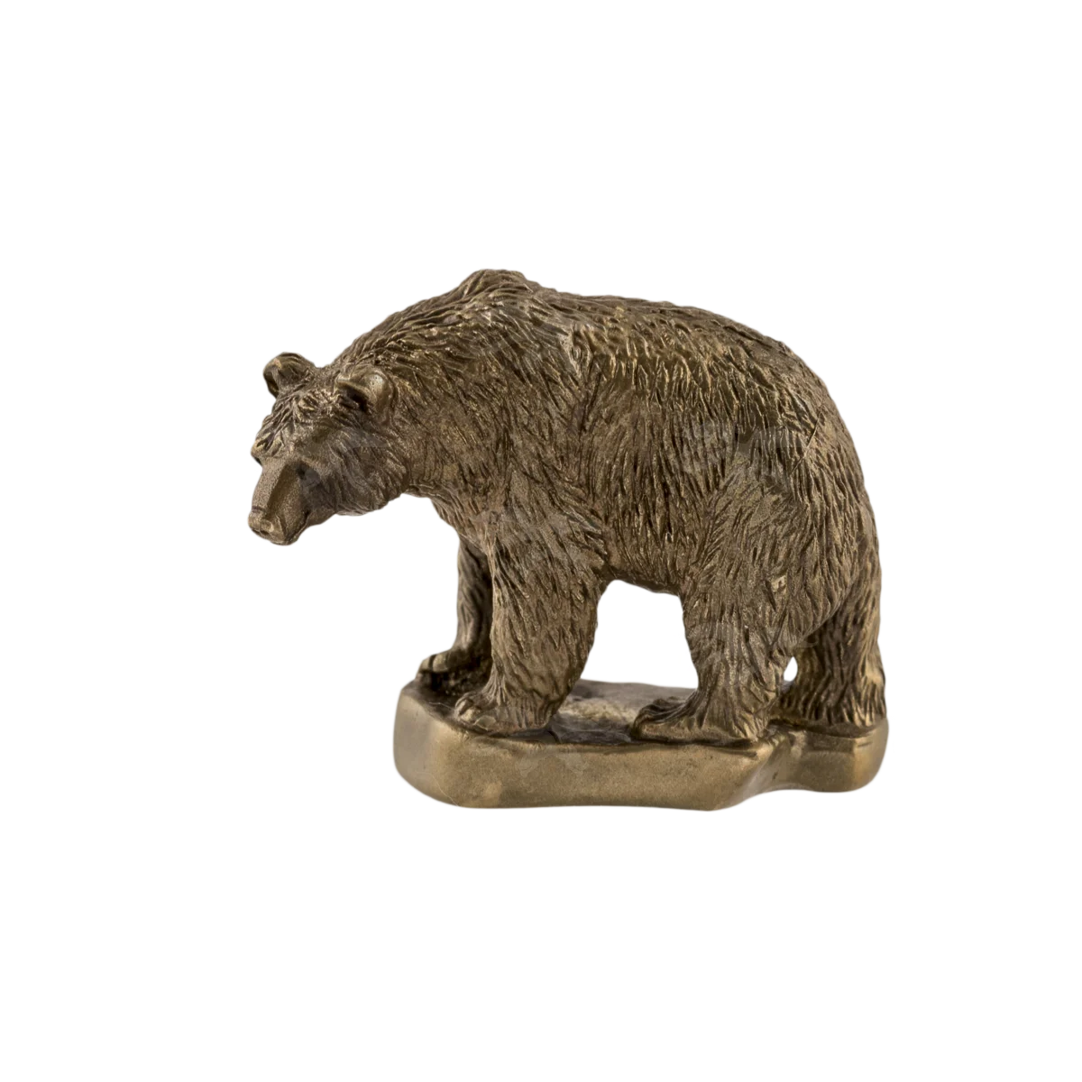 Мастерская «Калежа» создает фигурки лесных животных, используя латунь. Медведь на подставке выполнен при помощи бронзового литья. Чтобы получить рельефную поверхность шерсти, наши мастера использовали химическую гравировку. Оригинальная статуэтка может стать образцом для нового сувенира – мы сделаем его в течение трех недель. Возможно использование других технологий обработки.