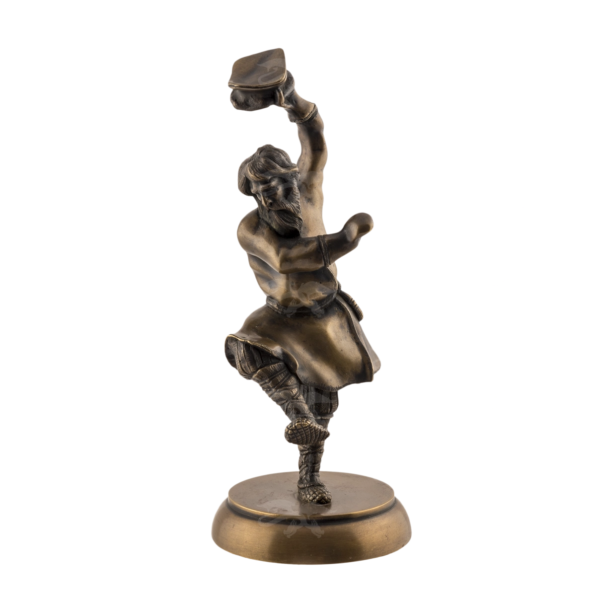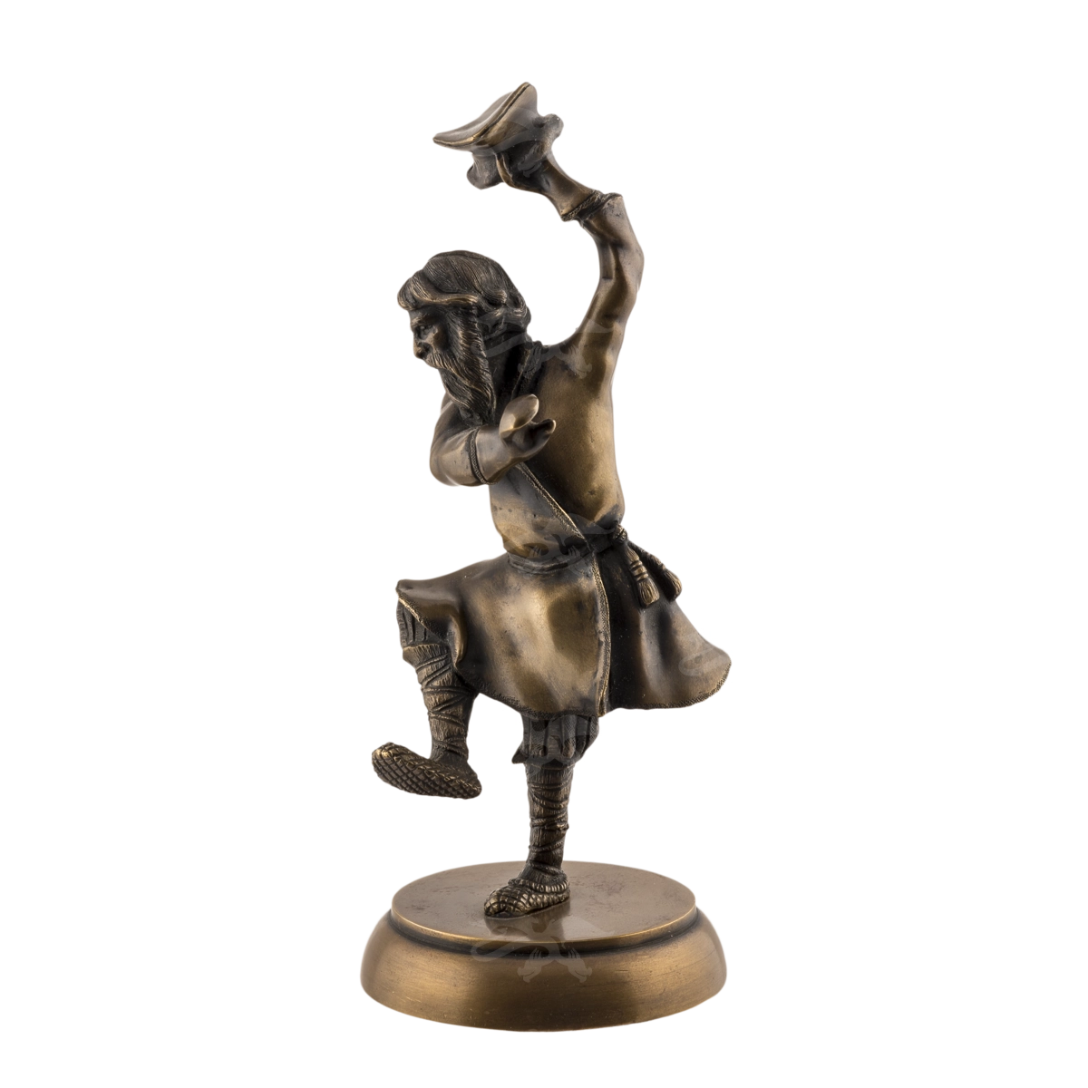 Мастерская «Калежа» изготавливает креативные сувениры из латуни. Мужчина со шляпой танцующий – уникальная работа. В центре композиции – фигурка человека, выполненная при помощи бронзового литья. Мы закрепили ее на подставке. Подобную статуэтку можно дополнить новыми элементами оформления. Изготовление сувенирной продукции у наших мастеров занимает не более трех недель.