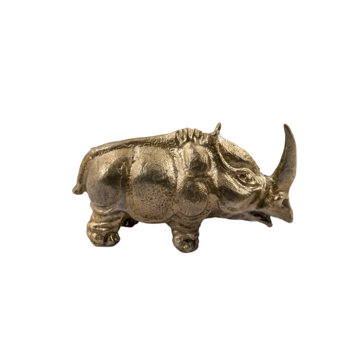 Мастерская «Калежа» предлагает оригинальные сувениры из латуни, изображающие животных. Один из примеров – носорог. При создании статуэтки наши мастера использовали бронзовое литье и гравировку. Реалистичное изображение складок кожи удалось получить с помощью чернения. Мы можем изготовить уникальную фигурку по предоставленному эскизу. Ваш заказ будет выполнен в течение трех недель.