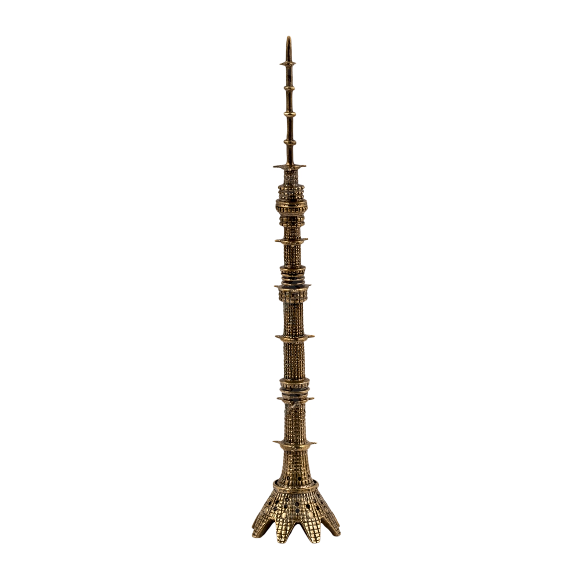 Художественно-производственная мастерская «Калежа» изготавливает оригинальные статуэтки известных архитектурных достопримечательностей. При создании миниатюрной Останкинской башни мы использовали бронзовое литье, в качестве материала – пластичную латунь. Поверхность сувенира была обработана с помощью технологий гравировки и чернения. Наши мастера реализуют уникальные проекты всего за три недели.