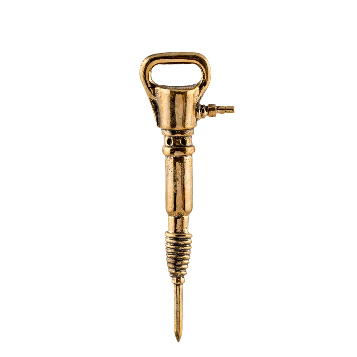 Мастерская «Калежа» создает разнообразные подарки из латуни. При создании отбойного молотка мы использовали бронзовое литье. Поверхность обрабатывалась с помощью бронзирования и полирования. Если это необходимо, в оформление можно добавить новые уникальные детали. Наши мастера также выполняют работу по предоставленным эскизам – ваш сувенир будет готов в течение трех недель.