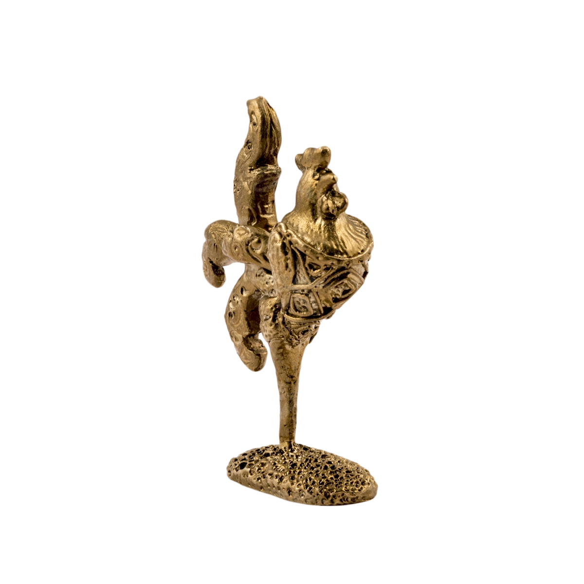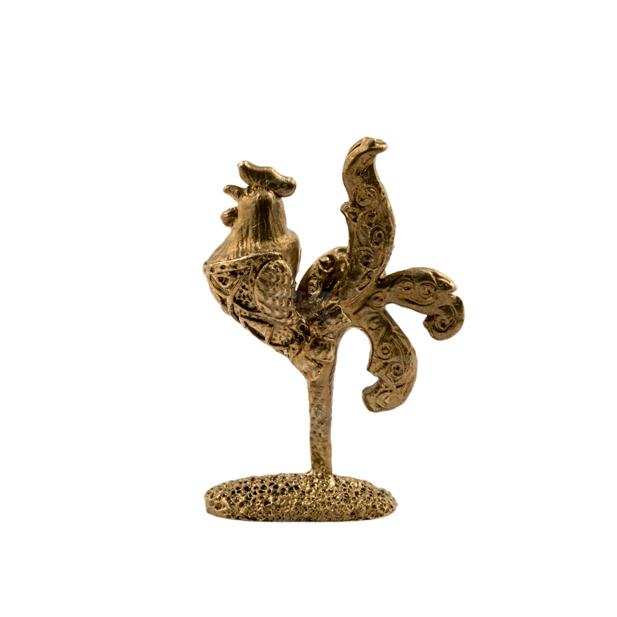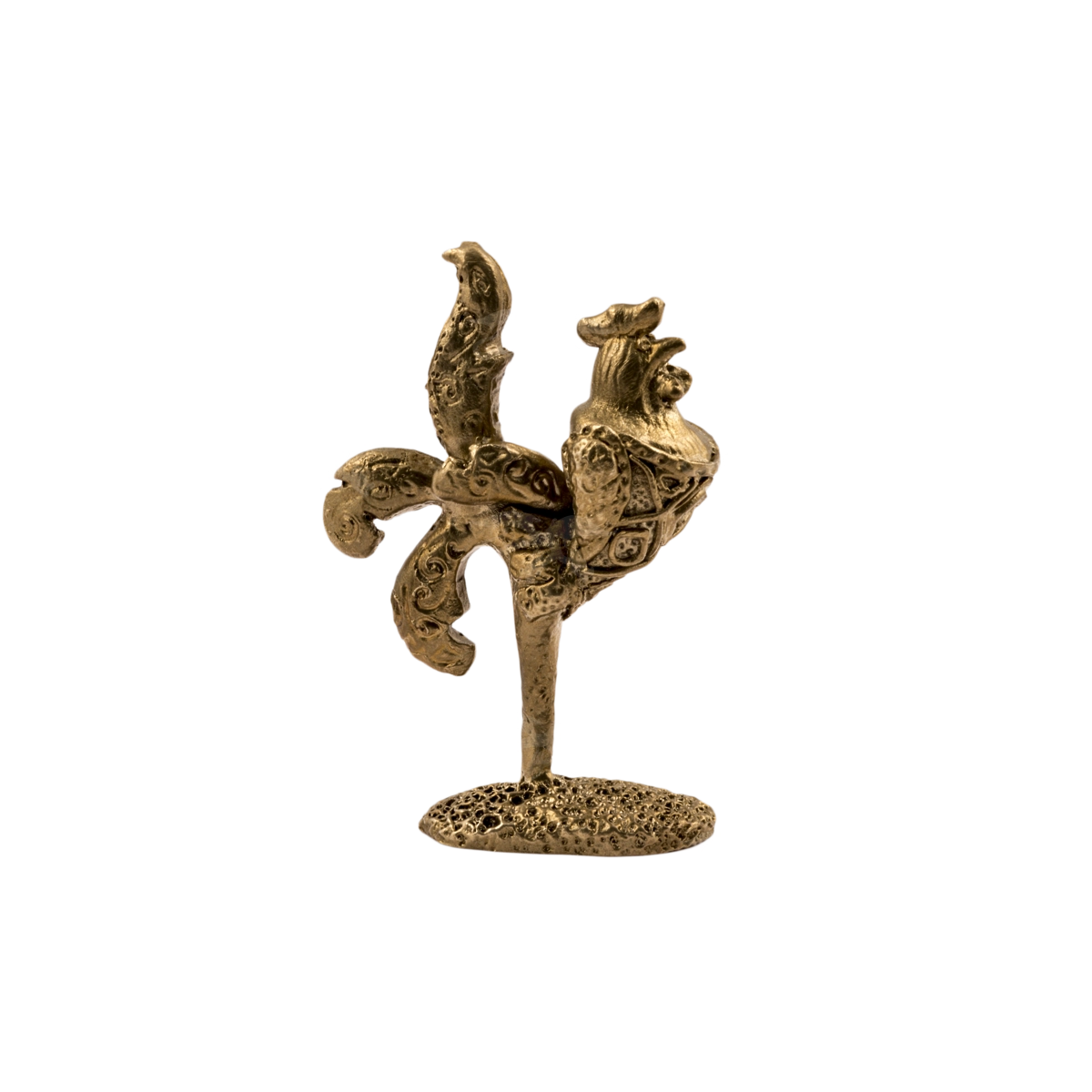 Мастерская «Калежа» предлагает уникальные латунные сувениры, изображающие птиц. Один из примеров – петух стилизованный. Чтобы получить статуэтку с объемным узором, наши мастера использовали бронзовое литье и технологии гравировки. Также мы можем изготовить оригинальную фигурку по предоставленному эскизу. Срок выполнения работы составляет всего три недели.