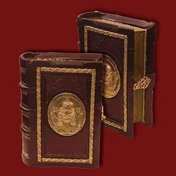 Художественная мастерская «Калежа» также делает латунный декор для подарочных изданий. Дополним любую книгу металлическими застежками, розетками, уголками, буквами или цифрами. В каталоге приведены примеры авторского переплета. Но декор для каждой книги нужно заказывать индивидуально.