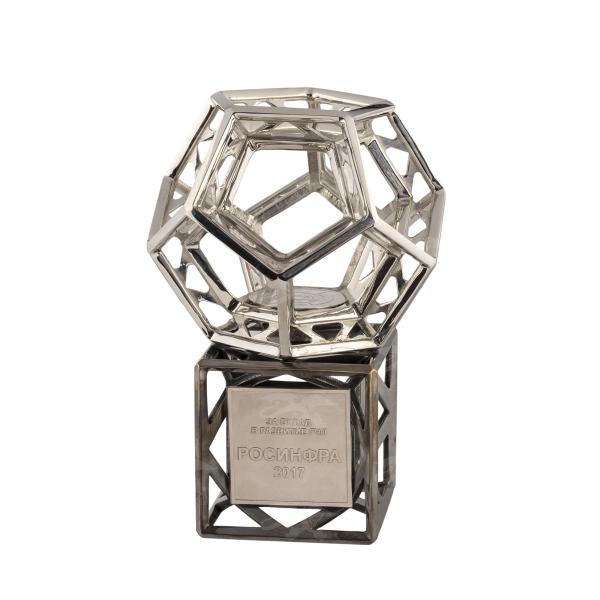 Мастерская «Калежа» создает оригинальные награды для бизнеса, используя латунь. Приз «За вклад в развитие ГЧП» служит образцом для них. Для изготовления уникального сувенира мы использовали бронзовое литье. Чтобы получить объемный узор, мастера применяли серебрение и чернение. Создание подобной работы возможно в течение трех недель. Наши мастера также используют предоставленные эскизы.