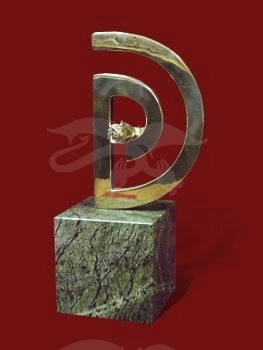 В мастерской «Калежа» вы можете заказать корпоративные призы по оригинальным авторским эскизам. Представленная стильная и лаконичная композиция из бронзы смотрится нестандартно и одновременно изысканно. Минималистическое оформление подчеркивает высокий статус церемонии награждения. Поверхность объемного логотипа отполирована до блеска. Получение этой награды – свидетельство признания в деловой среде.