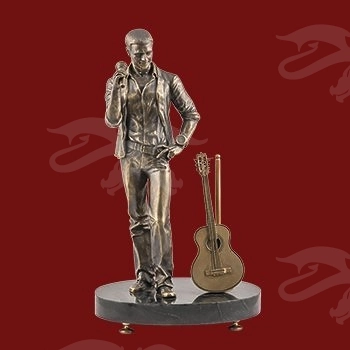 Статуэтка популярного певца Эмина Агаларова выполнена из бронзы и имеет оригинальное воплощение. Фигурка на сцене дополнена гитарой. Композиция создана по индивидуальному эскизу и является выставочным образцом. Мы можем выполнить подобную скульптуру с персонифицированными данными. В мастерской «Калежа» создаются оригинальные корпоративные бизнес-сувениры, отражающие сферу деятельности компании. Данные изделия станут отличным презентом для сотрудников или деловых партнеров. Особенностью сувениров, созданных нашими мастерами, являются высокая детализация, безупречное исполнение, а также оригинальные и яркие идеи.