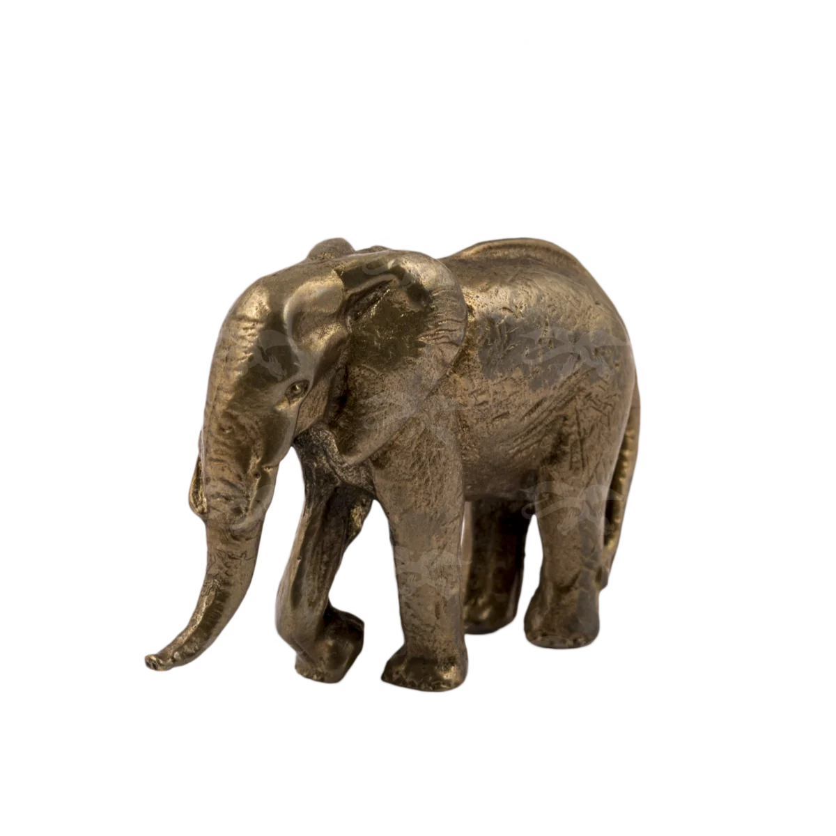 Слон с опущенным хоботом выполнен из латуни. Чтобы получить оригинальную фигурку, мастера использовали бронзовое литье. При создании рельефна кожи и ушей применялась химическая гравировка. Вы можете заказать работу с подобным дизайном. Мы готовы изменить некоторые детали оформления или добавить другие декоративные элементы. Срок работы над латунным сувениром составляет три недели.