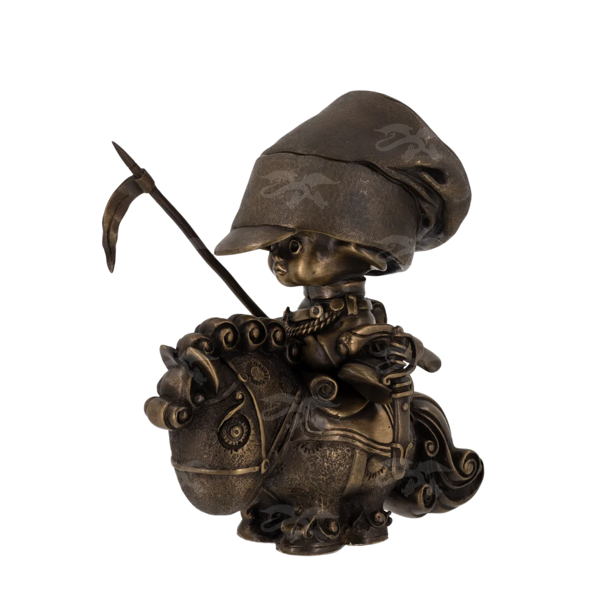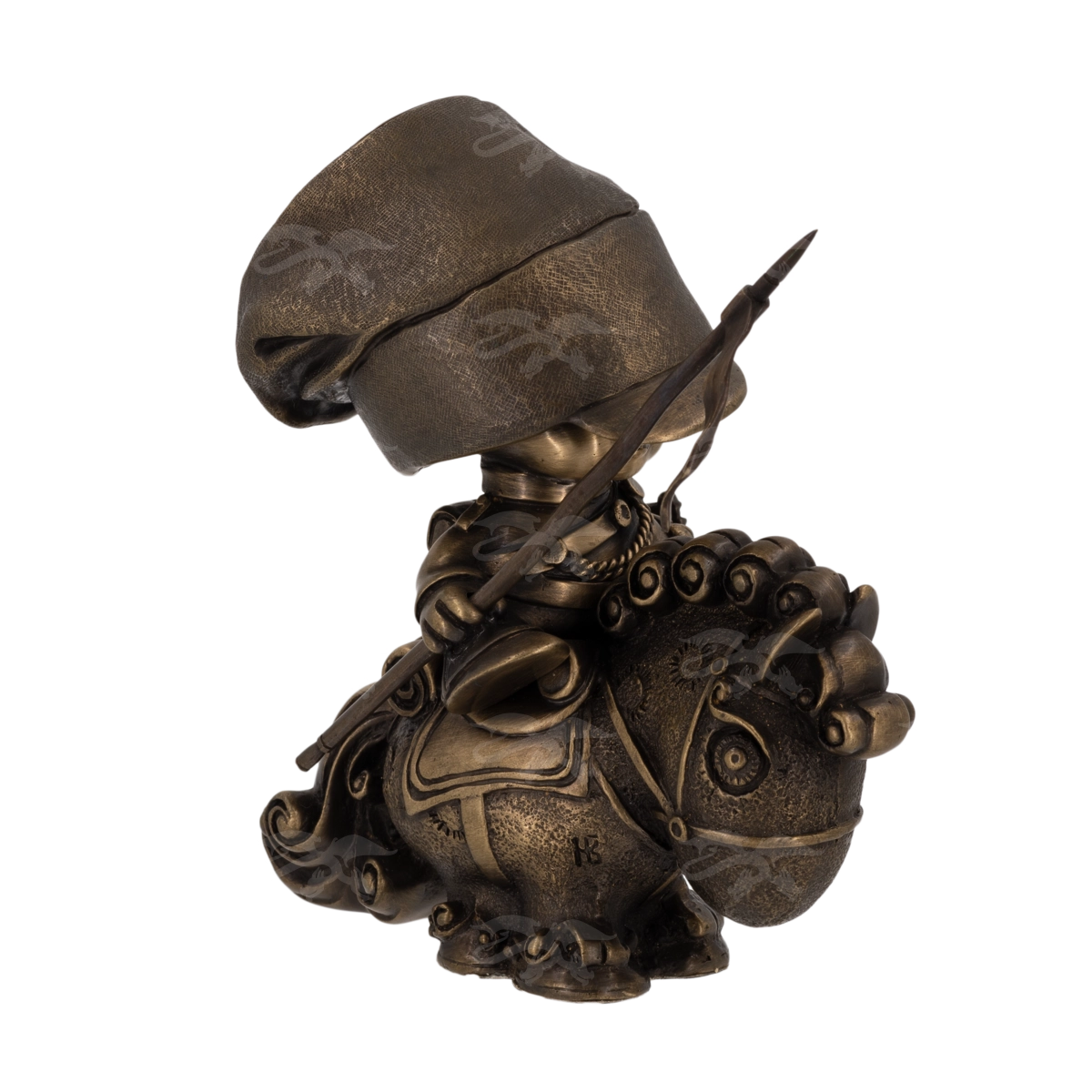 Стильная статуэтка, изображающая малыша в форме казака, изготовлена специалистами мастерской «Калежа». Эта необычная работа одинаково великолепно смотрится в доме на Дону и в обычной московской квартире. Благодаря применению качественного металла изделие устойчиво к коррозии. В мастерской «Калежа» вы также можете купить фигурки и статуэтки других родов войск.