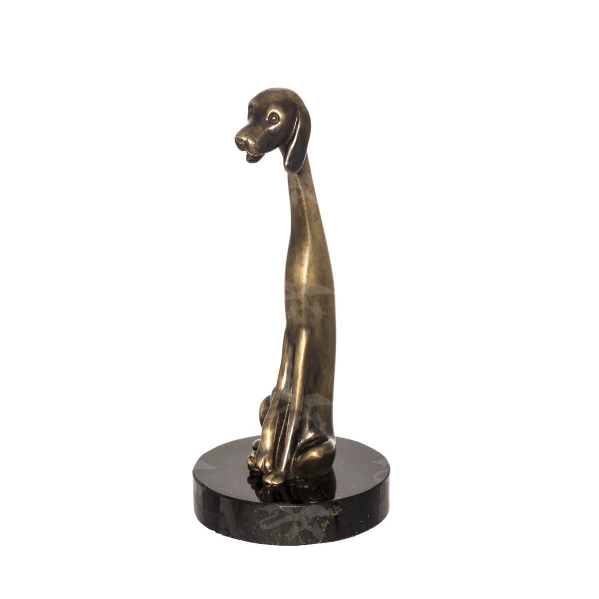 В мастерской «Калежа» для вас изготовят сувениры из латуни. Статуэтка «Собака» выполнена по технологии художественного бронзового литья. Высота изделия 153 мм. Композиция представляет собой необычное изображение собаки на подставке. Чтобы получить сложный объемный рисунок, мастера применяли чернение. Подобные сувениры изготавливаются в течение трех недель. Возможно добавление новых элементов.