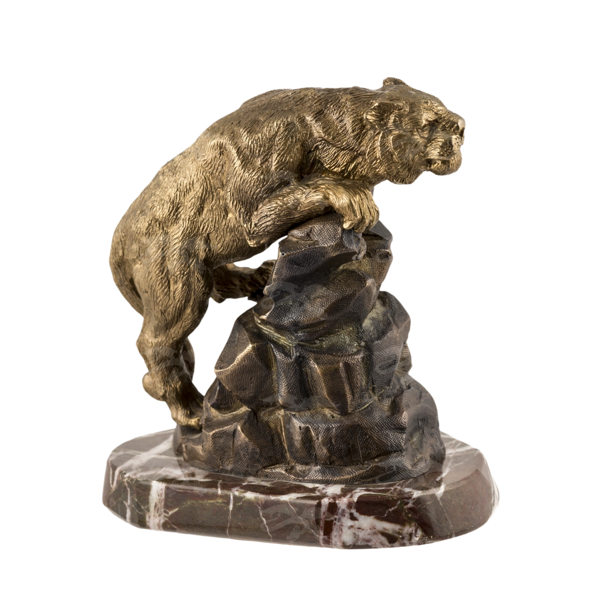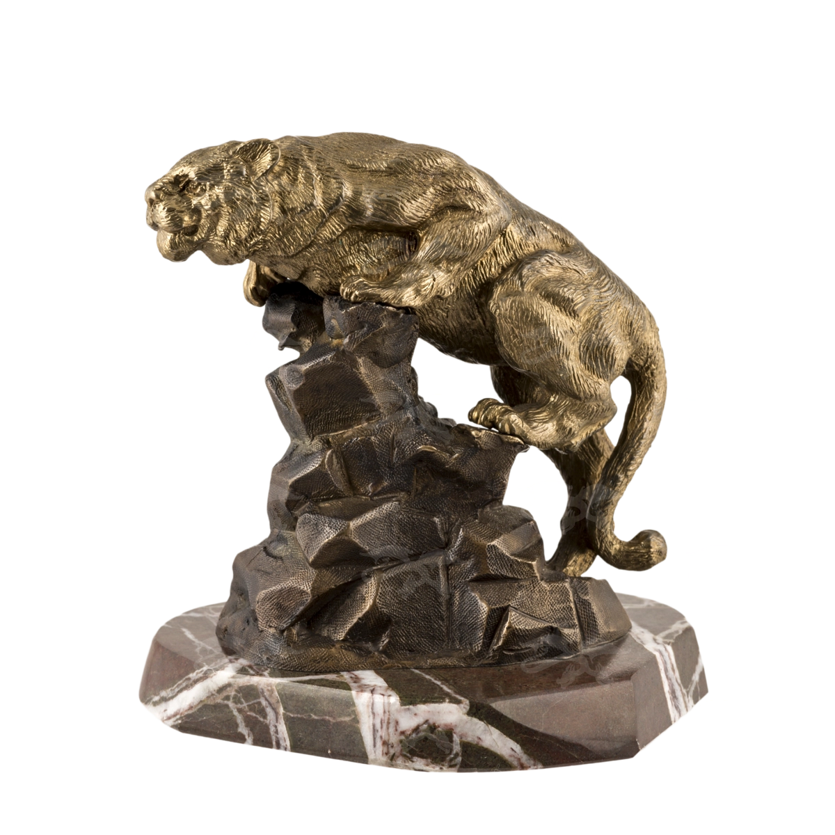 Мастерская «Калежа» выполняет подарки из латуни, применяя бронзовое литье. Наши специалисты изготовили оригинальный сувенир П60. В центре композиции находится объемное изображение пантеры, закрепленное на подставке из камня. Наши мастера создают подобную сувенирную продукцию всего за три недели. Мы можем изменить или добавить новые декоративные элементы.
