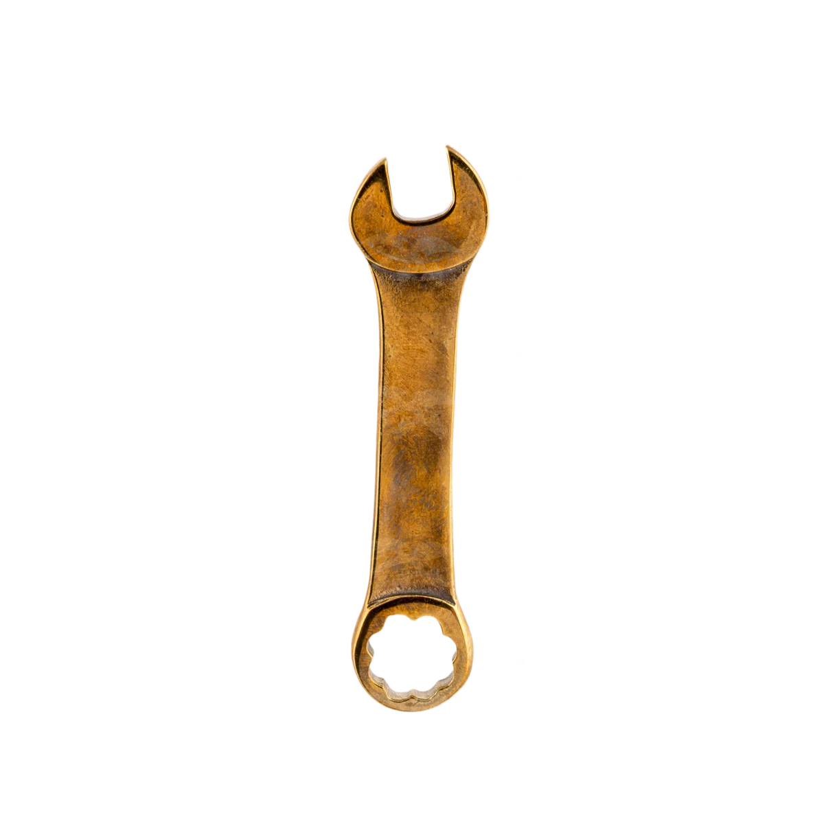 Сувенир «Гаечный ключ» станет отличным подарком человеку, способному отремонтировать что-то своими руками. Специалисты мастерской «Калежа» смогли выполнить из мягкой латуни точную копию инструмента. Использовать по назначению его не стоит. Лучше сделать оригинальным украшением рабочего стола или книжного шкафа в кабинете. Эту модель наши мастера не могут повторить. Но вы можете заказать другие сувениры из латуни.