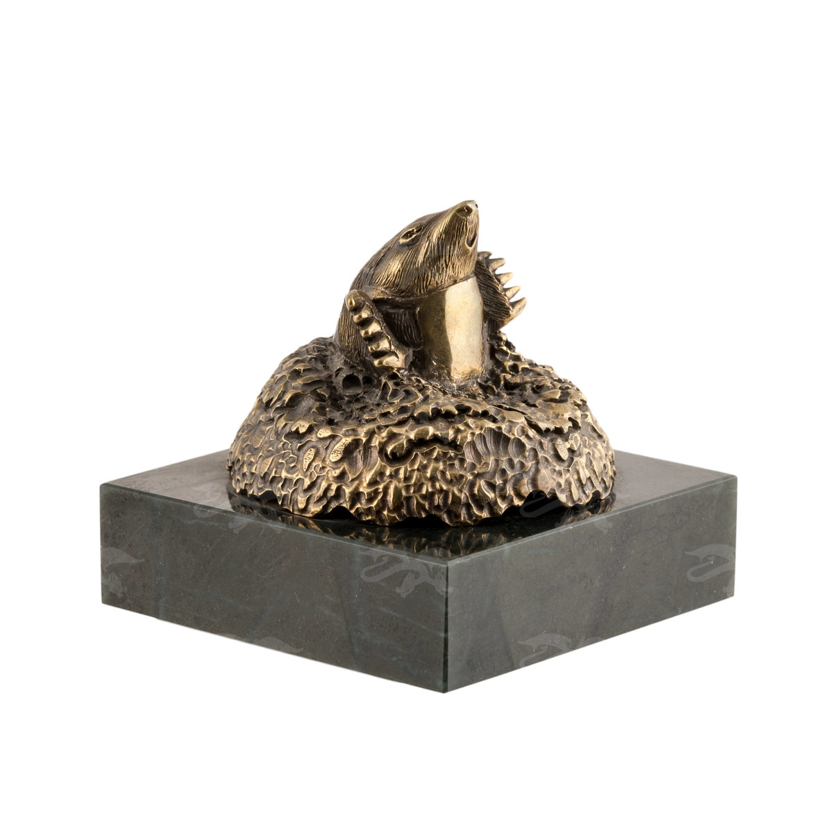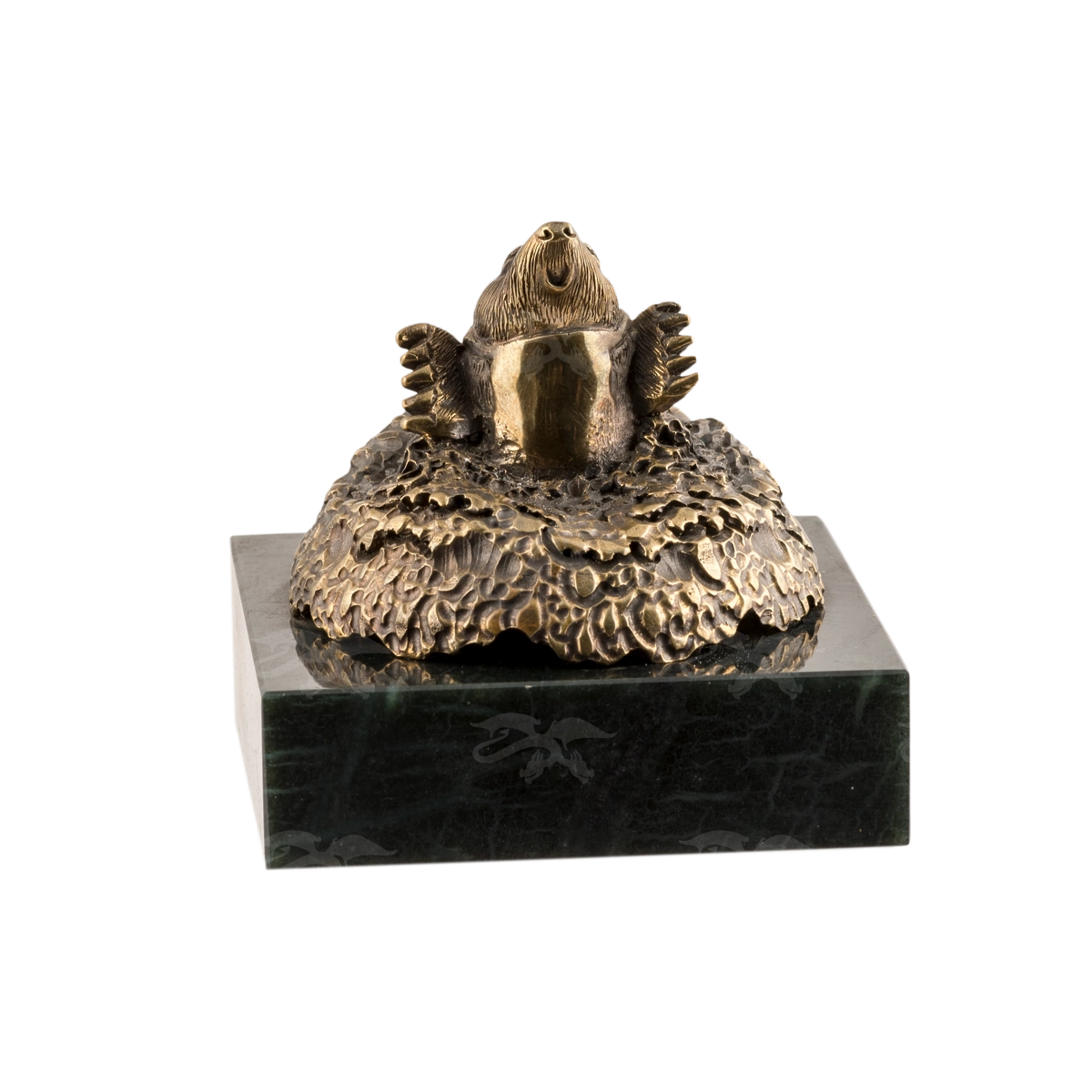 Сувенир «Крот» станет отличным подарком поклонникам известного чешского мультфильма. Наши мастера отлили из латуни забавного зверька, медленно выползающего из своей норки на свет. Металлическую фигурку поместили на подставку из натурального камня. На фото представлен образец, который можно повторить или использовать для создания собственного эскиза.