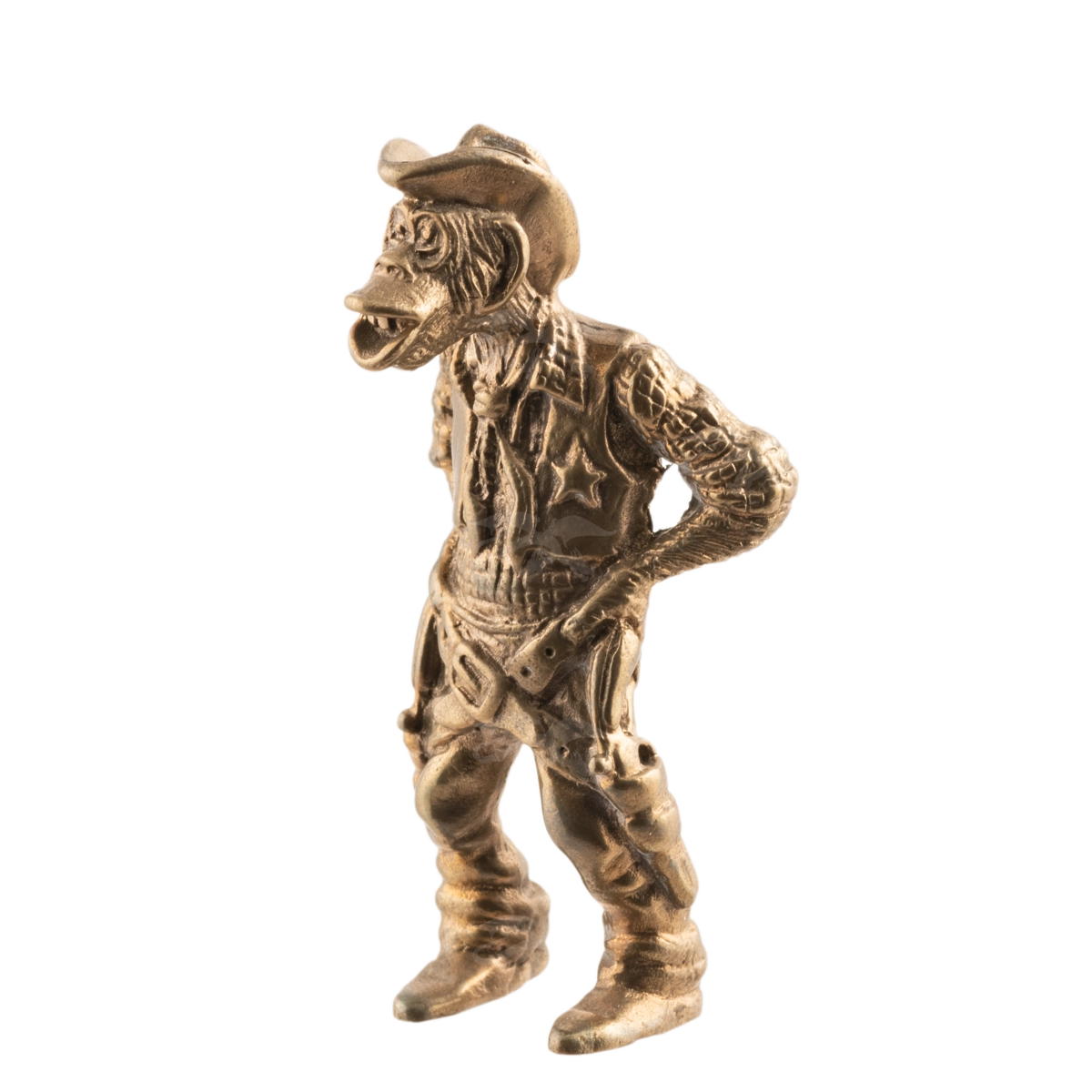 Статуэтка в виде суровой обезьяны-шерифа была изготовлена специалистами мастерской «Калежа» специально в качестве сувенира на Новый год. Мартышка располагается на основании из камня. У нас вы можете заказать подарки на Новый год для коллег, подобные представленной статуэтке, или по индивидуальным заказам. Результатом являются оригинальные изделия, которые станут украшением праздника и принесут удачу и профессиональные успехи в Новом Году.