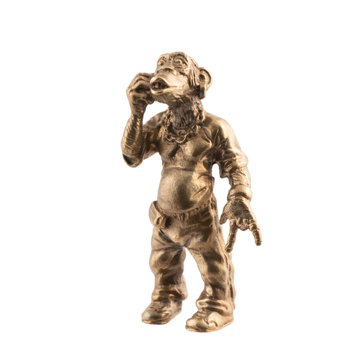 Статуэтка изображает деловую обезьяну, которая ведет переговоры по мобильному телефону. Она расположена на основании из камня. В мастерской «Калежа» можно заказать новогодние подарки для коллег, подобные представленному. Мастера создадут уникальные изделия, отражающие особенности характера или сферы деятельности поздравляемого. Каждый подарок, созданный в нашей мастерской, представляет собой эксклюзивную вещь.
