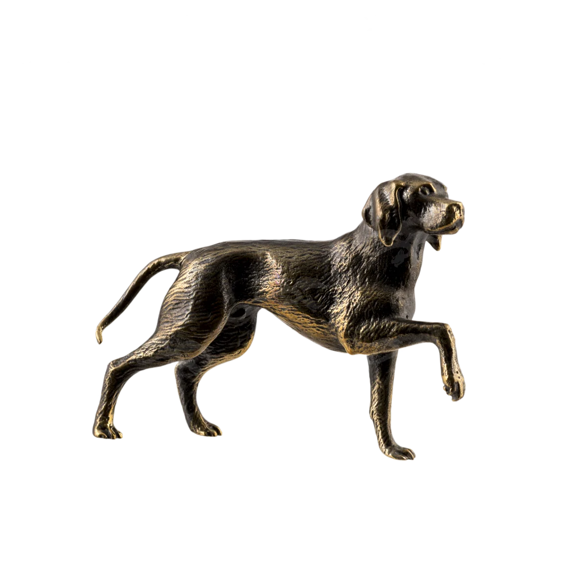 Мастерская «Калежа» изготавливает оригинальные статуэтки домашних животных из латуни. Сувенир «Пойнтер» – креативная работа наших специалистов. Миниатюрная собака этой породы создана с помощью технологии бронзового литья. Такой подарок лучше всего вручить любителю охоты. При оформлении возможно использование новых декоративных элементов. Наши специалисты работают над проектами в течение трех недель.