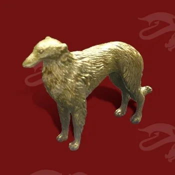 В мастерской «Калежа» изготовлен оригинальный сувенир «Русская псовая борзая». Фигурка собаки получена с помощью технологий литья из латуни. Возможно создание статуэток, изображающих домашних животных любых пород. При изготовлении сувенирной продукции наши мастера могут использовать дизайнерские идеи заказчиков. Срок работы составляет до трех недель.